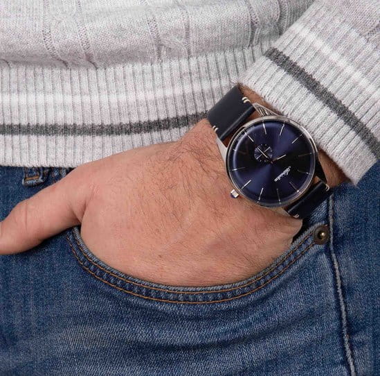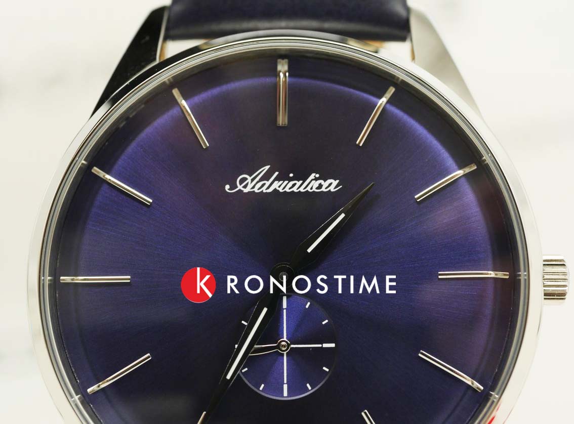 Часы Adriatica A8264.5215Q воплощают в себе элегантность и функциональность, идеально подходящие для современных мужчин, ценящих швейцарское качество. Их синий циферблат, защищенный минеральным стекломМинеральное стеклоМинеральное стекло представляет собой искусственно выращенный минерал кварца. Такое стекло отличается особой устойчивостью к повреждениям и царапинам. Уступает по некоторым качествам сапфировому стеклу., заключен в корпус из нержавеющей стали диаметром 40 мм и толщиной 10 мм. Надежный кварцевый механизм с калибром ETA 902 обеспечивает высокую точность, а водозащита 5 ATM делает часы устойчивыми к воздействию воды. Изящная вынесенная секундная стрелка добавляет стильный акцент. Кожаный синий браслет обеспечивает комфортное ношение и подчеркивает утонченность дизайна. Весом всего 45 г, они практически не ощущаются на запястье. А люминесцентное покрытиеЛюминесцентное покрытиеПозволяет считывать показания времени в темноте. Производители наносят на стрелки, часовые индексы, безель или поверхность циферблата светонакопительный состав, дающий холодное свечение. на стрелках облегчает чтение времени в условиях низкой освещенности.