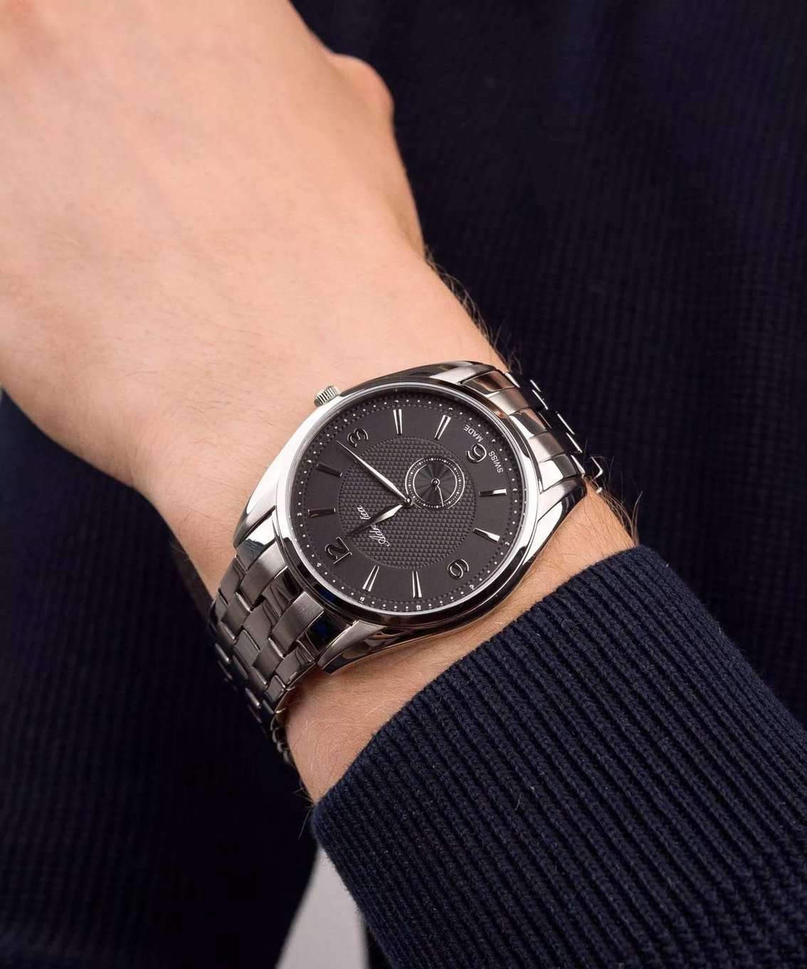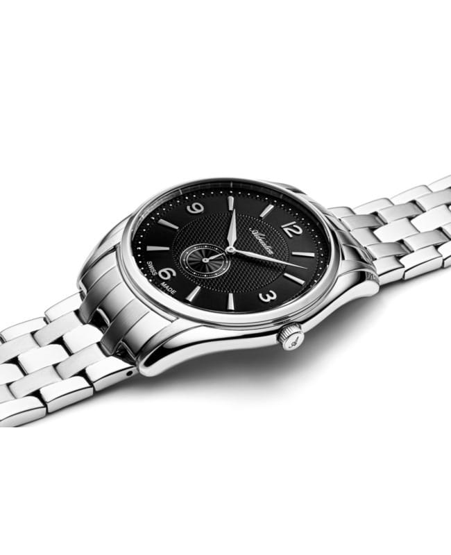 Мужские швейцарские часы Adriatica Premiere A8279.5154Q имеют кварцевый механизм с высокой точностью. Корпус часов изготовлен из нержавеющей стали. Сапфировое стеклоСапфировое стеклоПрочный и надёжный материал из кристалла сапфира синтетического происхождения, характеризующийся особой твёрдостью и устойчивостью к царапинам и повреждениям. устойчивое к появлению царапин, обладающее высокой прозрачностью, защищает гильошированный циферблат с метками в виде штрихов и арабских цифр, а секундная стрелка вынесена на отдельный циферблат. Стальной браслет с раскладной застёжкойРаскладная застёжкаТакой тип застёжки используется только на браслетах из металла. Она никогда не раскрывается полностью, происходит разделение на 2 и более частей. Раскладывающая застёжка снизит вероятность потери часов к минимуму. обеспечивает комфортное ношение и надежную фиксацию на запястье. Надежный кварцевый механизм с калибром ETA 902 гарантирует точность времени, а водозащита 50 метров, что позволит защитить корпус от случайных брызг или капель дождя.