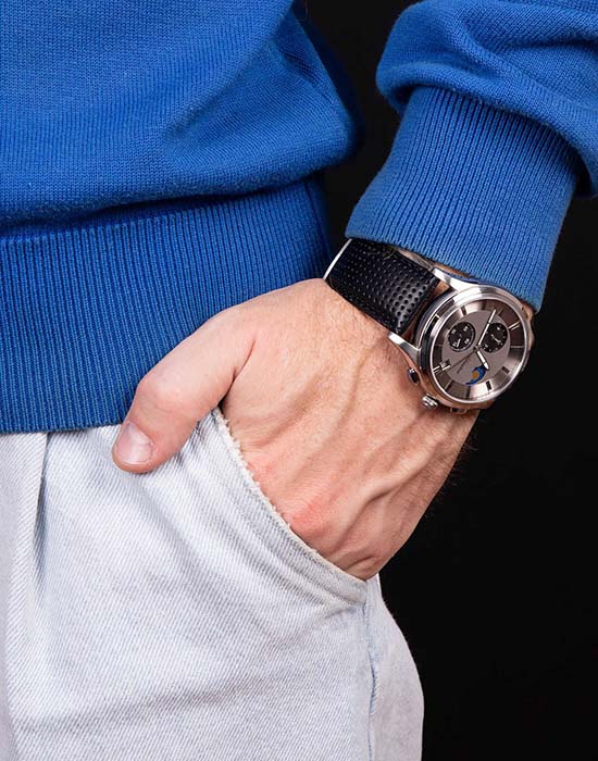 Кварцевые часы работают от батарейки или аккумулятора. Внутри механизма установлен кристалл кварца: под воздействием электричества он колеблется с очень стабильной частотой, а электроника превращает эти колебания в секунды и управляет стрелками. Такие часы ценят за точность и простоту. Средняя погрешность — около ±15 секунд в месяц, поэтому время долго остаётся практически идеальным.