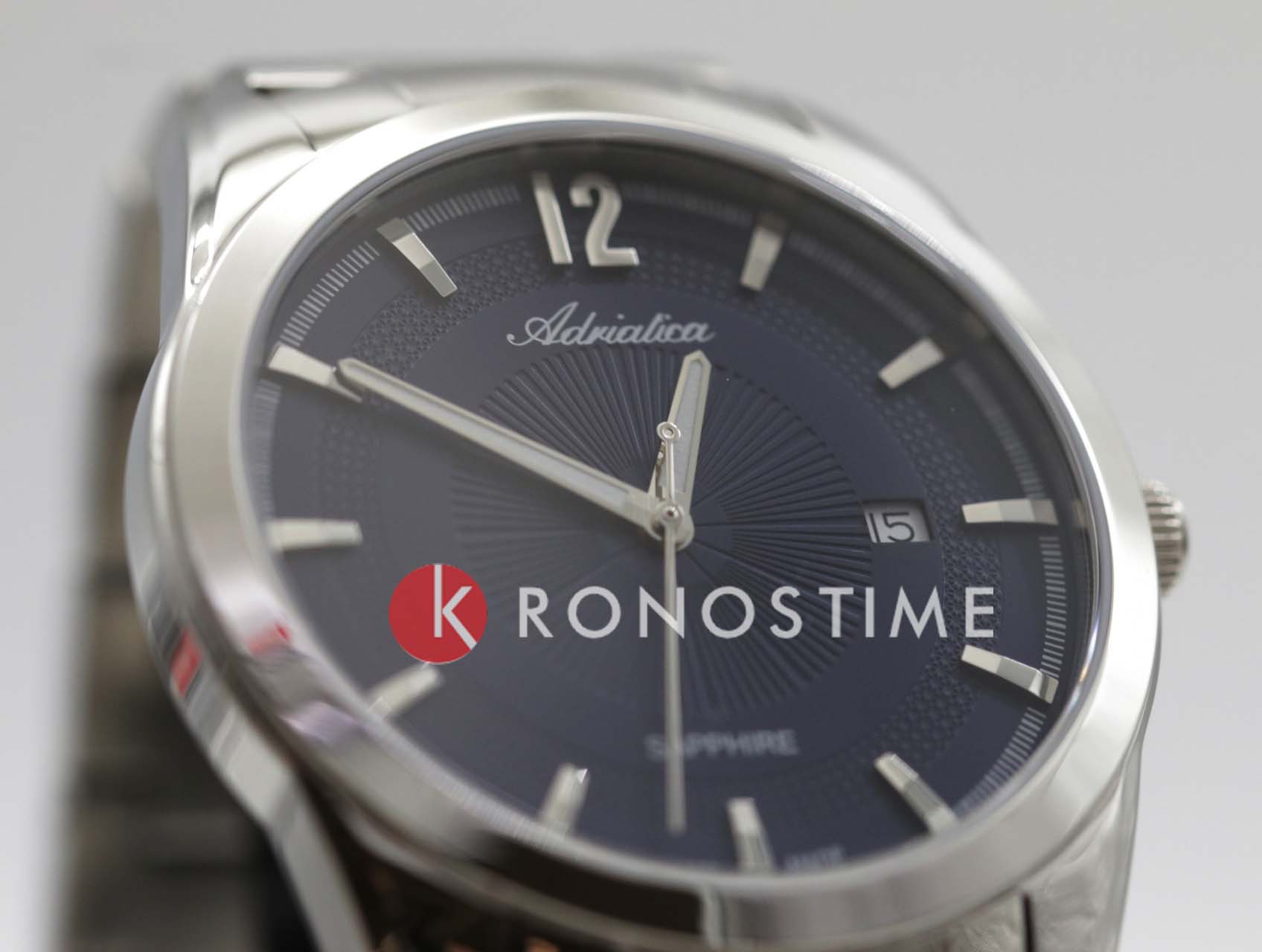 Часы Adriatica A8301.5155Q воплощают в себе элегантность и функциональность, идеально подходящие для современных мужчин, ценящих швейцарское качество. Их синий циферблат защищенный сапфировым стекломСапфировое стеклоПрочный и надёжный материал из кристалла сапфира синтетического происхождения, характеризующийся особой твёрдостью и устойчивостью к царапинам и повреждениям., заключен в корпус из нержавеющей стали диаметром 45 мм и толщиной 11 мм. Надежный кварцевый механизм с калибром ETA F06 обеспечивает высокую точность, а водозащита 5 ATM делает часы устойчивыми к воздействию воды. Стальной браслет с раскладной застёжкойРаскладная застёжкаТакой тип застёжки используется только на браслетах из металла. Она никогда не раскрывается полностью, происходит разделение на 2 и более частей. Раскладывающая застёжка снизит вероятность потери часов к минимуму. обеспечивает комфортное и надежное ношение. Часы оснащены функцией отображения даты в окошке в положении 3 часа, что добавляет практичности в повседневной жизни. Люминесцентное покрытиеЛюминесцентное покрытиеПозволяет считывать показания времени в темноте. Производители наносят на стрелки, часовые индексы, безель или поверхность циферблата светонакопительный состав, дающий холодное свечение. на стрелках обеспечивает отличную видимость в темноте.
