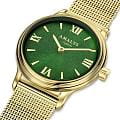Amalys AMW-201 — женская модель с утончённым классическим дизайном, в которой сочетаются элегантность и практичность. Круглый корпус диаметром 28 мм выполнен из нержавеющей стали с PVD-покрытиемPVDУльтратонкое покрытие наносится в технике вакуумного напыления, сочетает в себе нитрид титана особой прочности со слоем золота или оксида хрома. Несёт в себе декоративную или защитную функцию., гармонирующим с браслетом шириной 14 мм в том же исполнении. Защитную функцию выполняет сапфировое стеклоСапфировое стеклоПрочный и надёжный материал из кристалла сапфира синтетического происхождения, характеризующийся особой твёрдостью и устойчивостью к царапинам и повреждениям., стойкое к царапинам и сохраняющее прозрачность. Механизм — кварцевый, обеспечивающий точность и стабильность хода. Браслет миланского плетения с PVD-покрытиемPVDУльтратонкое покрытие наносится в технике вакуумного напыления, сочетает в себе нитрид титана особой прочности со слоем золота или оксида хрома. Несёт в себе декоративную или защитную функцию. снабжён раскладным замкомРаскладной замокДанный вариант застежки используется только на часах с металлическим браслетом. Отличительная особенность такого крепления в том, что длина браслета становится универсальной и вы можете самостоятельно отрегулировать нужный вам размер – застежка просто двигается по браслету часов., который сочетает надёжность фиксации и удобство повседневного использования. Водозащита 5 ATM защищает часы от случайных брызг и дождя. Циферблат с римскими индексами и изящными стрелками подчёркивает классическую эстетику модели, делая её уместной как в повседневных образах, так и в торжественной обстановке.