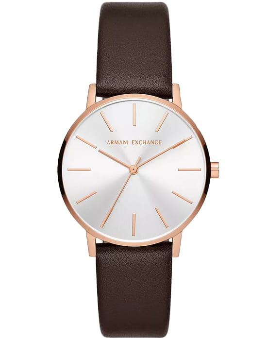 Кварцевые американские женские часы с минеральным стекломМинеральное стеклоМинеральное стекло представляет собой искусственно выращенный минерал кварца. Такое стекло отличается особой устойчивостью к повреждениям и царапинам. Уступает по некоторым качествам сапфировому стеклу. Armani Exchange AX5592, кварцевый механизм с высокой точностью. Класс водозащиты: 50 метров, позволит защитить корпус от случайных брызг или капель дождя. Корпус часов изготовлен из стали с IP-покрытиемIP-покрытиеМетод ионного напыления. Демонстрирует повышенную устойчивость к истиранию, окислению и химическим веществам. Под воздействием высокого давления и температуры около 1500°C молекулы металла надёжно соединяются с частицами корпуса часов.. Кожаный ремешок. Класс водозащиты: 50 метров, позволит защитить корпус от случайных брызг или капель дождя