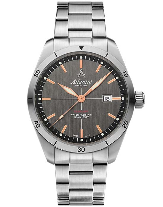 Мужские швейцарские часы c сапфировым стеклом Atlantic 70356.41.41R, кварцевый механизм с высокой точностью. Сапфировое стекло устойчивое к появлению царапин, обладающее высокой прозрачностью. Класс водозащиты: 50 метров, позволит защитить корпус от случайных брызг или капель дождя. Корпус часов изготовлен из стали, цвета.