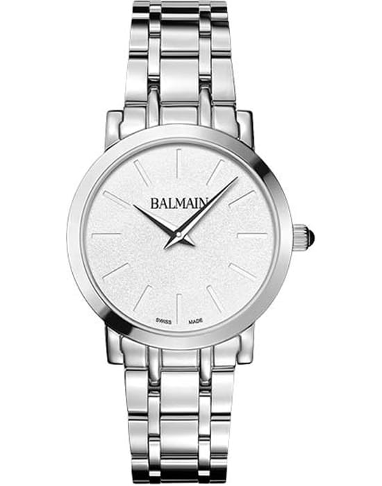 Женские часы Balmain Laelia B4431.33.26 кварцевый механизм с высокой точностью. Сапфировое стеклоСапфировое стеклоПрочный и надёжный материал из кристалла сапфира синтетического происхождения, характеризующийся особой твёрдостью и устойчивостью к царапинам и повреждениям. устойчивое к появлению царапин, обладающее высокой прозрачностью. Корпус изготовлен из нержавеющей стали. Класс водозащиты: 50 метров, позволит защитить корпус от случайных брызг или капель дождя. Стальной браслет. на застёжке «бабочка» с кнопкамиЗастёжка "бабочка"Такой вид застёжки дополняется предохранителями, помогающими избежать случайного раскрытия браслета. Обладают изящным исполнением. .