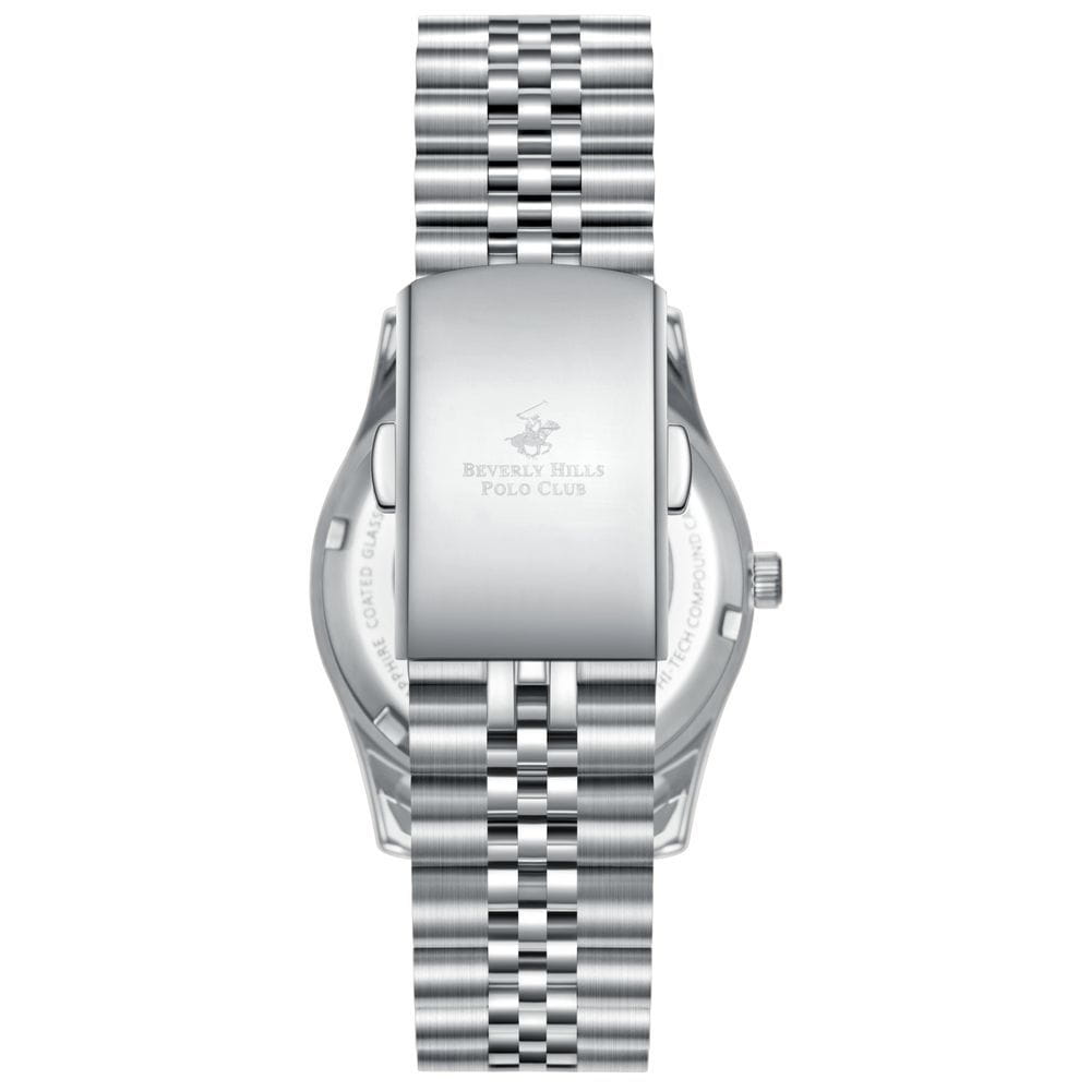 Beverly Hills Polo Club BP3169C.300 — женские часы, сочетающие изящество и функциональность в компактном формате. Корпус из суперметалла диаметром 34 мм и браслет. Циферблат украшен тремя субциферблатами — индикаторы даты, дня недели и 24‑часового формата — что придаёт модели утончённую многозадачность. Стрелки и метки выполнены, подчёркивая элегантность и визуальную лёгкость. Механизм — точный кварцевый, надёжный и неприхотливый, требующий только замены батареи раз в 1–2 года . Циферблат покрыт прочным минеральным стекломМинеральное стеклоМинеральное стекло представляет собой искусственно выращенный минерал кварца. Такое стекло отличается особой устойчивостью к повреждениям и царапинам. Уступает по некоторым качествам сапфировому стеклу., устойчивым к царапинам и сохраняющим безупречный внешний вид . Браслет оснащён удобной застёжкой “бабочка”Застёжка "бабочка"Такой вид застёжки дополняется предохранителями, помогающими избежать случайного раскрытия браслета. Обладают изящным исполнением. , обеспечивая плавное и надёжное прилегание. Водозащита на уровне 3 ATM (≈30 м) защищает от брызг и случайных осадков . Beverly Hills Polo Club — утончённый аксессуар для женщин, ценящих стиль, надёжность и изысканные детали, где каждая функция подчёркнута строгой, но изящной эстетикой.