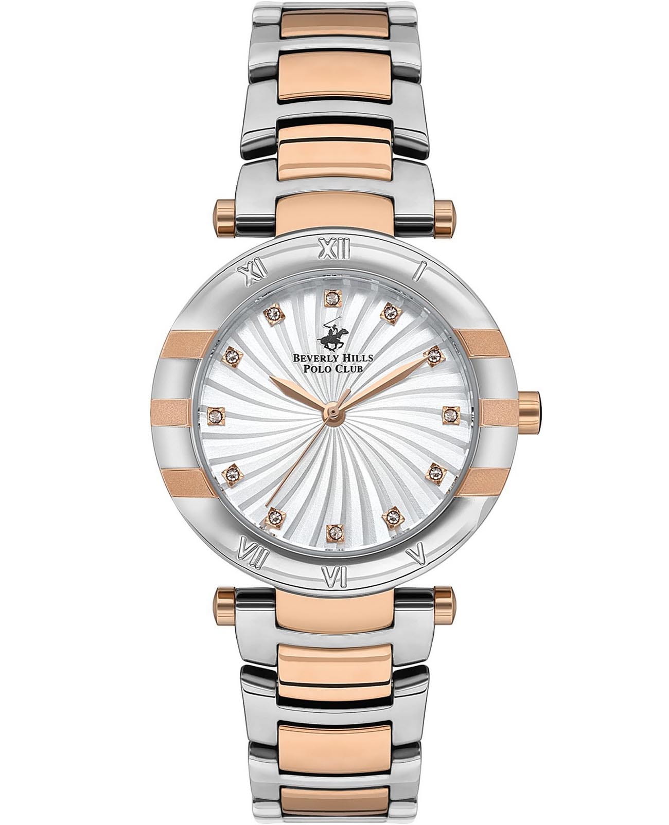 Женские наручные часы Beverly Hills Polo Club BP3565C.530 с надёжным кварцевым механизмом. Корпус часов изготовлен из суперметалла с частичным IP-покрытиемIP-покрытиеМетод ионного напыления. Демонстрирует повышенную устойчивость к истиранию, окислению и химическим веществам. Под воздействием высокого давления и температуры около 1500°C молекулы металла надёжно соединяются с частицами корпуса часов.. Стальной браслет на застёжке-бабочке. Минеральное стеклоМинеральное стеклоМинеральное стекло представляет собой искусственно выращенный минерал кварца. Такое стекло отличается особой устойчивостью к повреждениям и царапинам. Уступает по некоторым качествам сапфировому стеклу. устойчивое к мелким механическим повреждениям. Циферблат украшен бриллиантами. Класс водозащиты: 30 метров, позволит защитить корпус от случайных брызг или капель дождя.