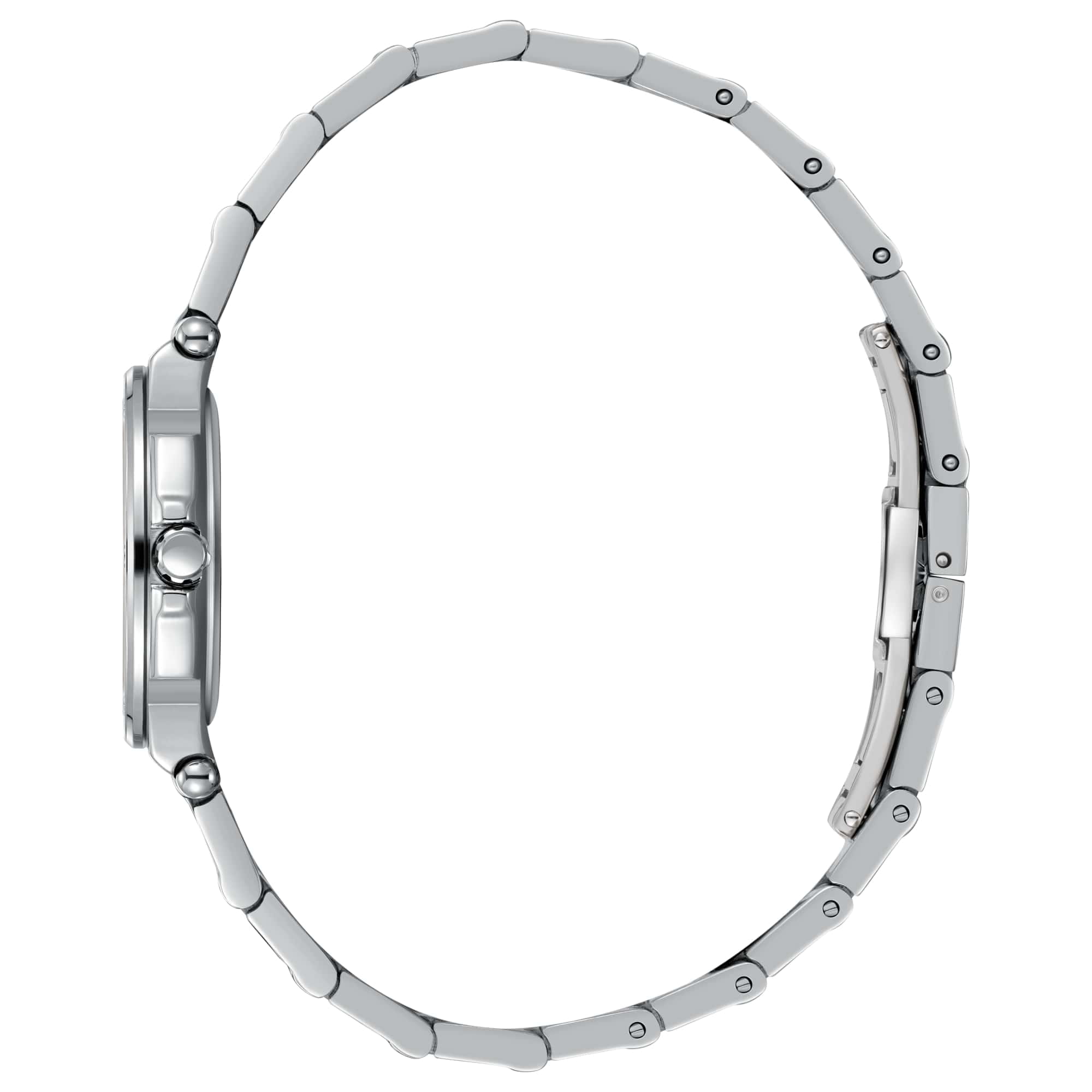 Стальной браслет на застёжке-бабочке с кнопкамиЗастёжка "бабочка"Такой вид застёжки дополняется предохранителями, помогающими избежать случайного раскрытия браслета. Обладают изящным исполнением. . Часы обладают водозащитой до 30 метров, позволит защитить корпус от случайных брызг или капель дождя. Синтетический бриллиант придает часам неповторимый шарм и изысканность.