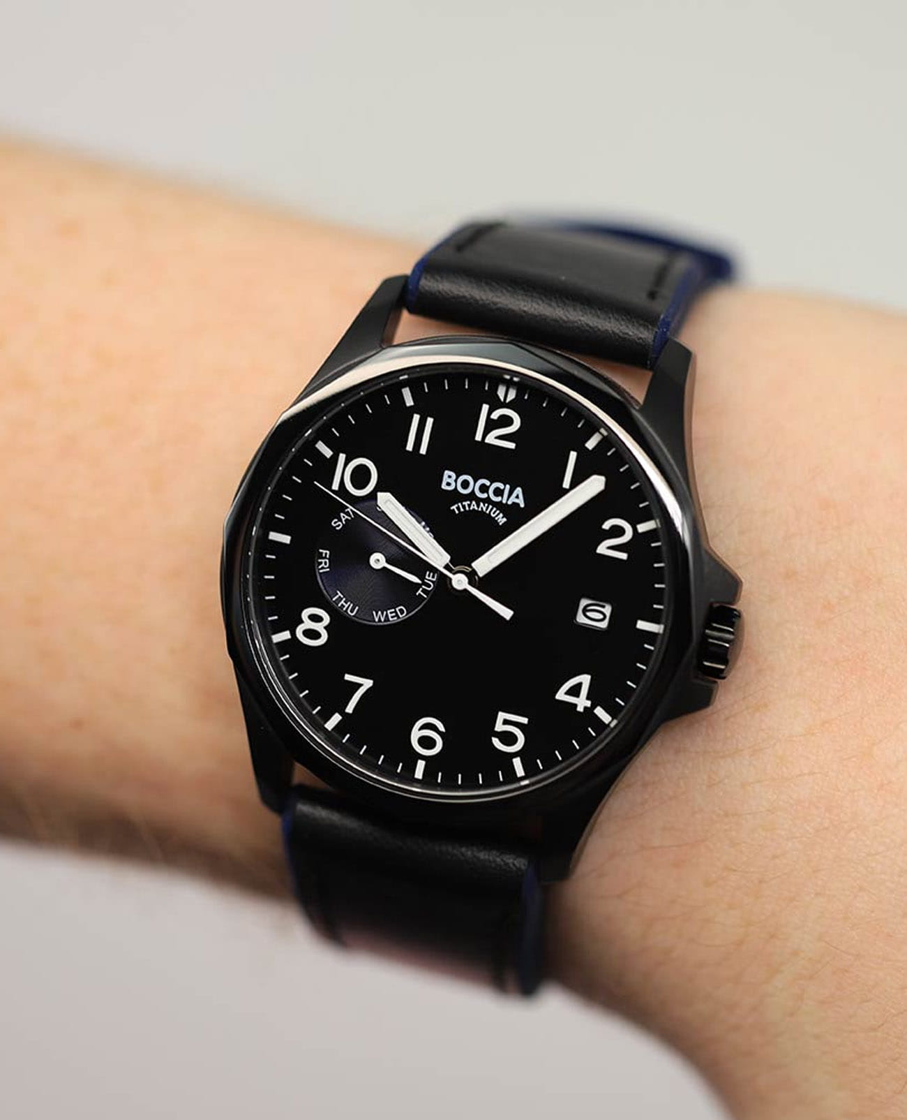 Мужские немецкие титановые часы Boccia Titanium Circle-Oval 3644-03, кварцевый механизм с высокой точностью. Минеральное стеклоМинеральное стеклоМинеральное стекло представляет собой искусственно выращенный минерал кварца. Такое стекло отличается особой устойчивостью к повреждениям и царапинам. Уступает по некоторым качествам сапфировому стеклу. устойчивое к мелким механическим повреждениям.Корпус изготовлен из титана с PVDPVDУльтратонкое покрытие наносится в технике вакуумного напыления, сочетает в себе нитрид титана особой прочности со слоем золота или оксида хрома. Несёт в себе декоративную или защитную функцию. покрытием. День недели отображается на отдельном циферблате. Окошко даты в положении 3 часов. Класс водозащиты: 50 метров, позволит защитить корпус от случайных брызг или капель дождя. Кожаный браслет на стандартной застежке.