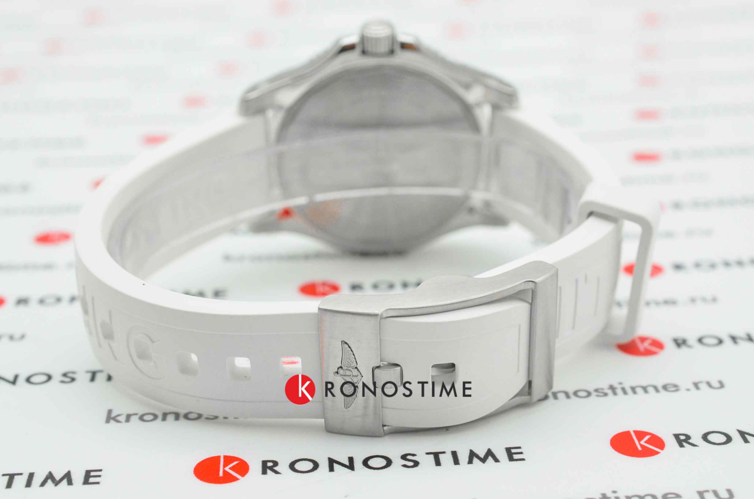 Класс водозащиты: 200 метров, позволит плавать, нырять и заниматься другими водными видами спорта. Корпус часов изготовлен из нержавеющей стали, серебристого цвета. Белый каучуковый ремешок с классической застежкой из нержавеющей стали.