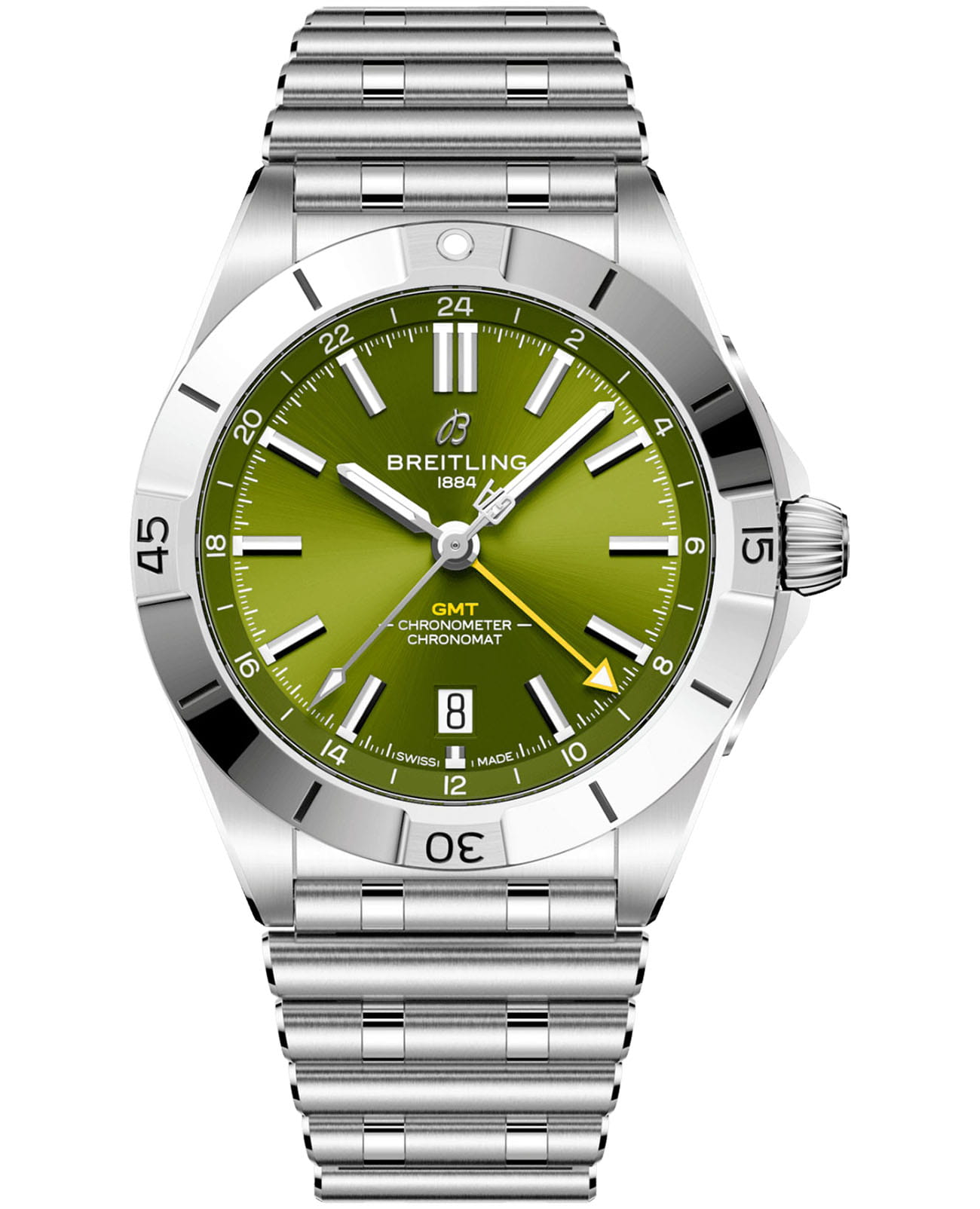 Мужские швейцарские часы Breitling Chronomat Automatic GMT 40 Giannis Antetokounmpo Limited Edition A32398A11L1A1 механический механизм (автоматический калибр) с высокой точностью. Выпущенные ограниченным тиражом совместно с Яннисом Адетокунмпо, тиражом всего 2000 экземпляров, сочетает в себе наше неподвластное времени мастерство и непринужденный стиль профессионального баскетболиста.  Центральной стрелки с инициалами спортсмена «GA» и на изображение баскетбольного мяча на счетчике секунд хронографаХронографФункция позволяет измерять отрезки времени с особой точностью: часы, минуты, секунды. Верным признаком хронографа является наличие на циферблате 3 дополнительных окошек-счётчиков. — это отсылка к его профессии и увлечению. На задней крышке выгравирована информация об ограничении: «One of 1750» для 40-миллиметровых автоматических часов GMT из нержавеющей стали. Сапфировое стеклоСапфировое стеклоПрочный и надёжный материал из кристалла сапфира синтетического происхождения, характеризующийся особой твёрдостью и устойчивостью к царапинам и повреждениям. с антибликовым покрытиемАнтибликовое покрытиеСлой оксида металла в 0,13-0,3 микрон, благодаря которому стекло часов не бликует и не отражает свет. Антибликовое покрытие уменьшает отражение света в 10 раз, обеспечивая отличную читаемость показателей циферблата. устойчивое к появлению царапин, обладающее высокой прозрачностью. Класс водозащиты: 200 метров, позволит плавать, нырять и заниматься другими водными видами спорта. Корпус часов изготовлен из нержавеющей стали, диаметром 40 мм. Стальной браслет на застёжке-бабочке с кнопкамиЗастёжка "бабочка"Такой вид застёжки дополняется предохранителями, помогающими избежать случайного раскрытия браслета. Обладают изящным исполнением. обеспечивает комфортное ношение. Часы имеют сертификат COSCСертификат COSCОфициальный сертификат, подтверждающий то, что часы ходят с особо высокой точностью. Для получения документа часы подвергаются тестовым испытаниям, разработанным швейцарским институтом тестирования хронометров COSC. Допустимая норма для механических часов -4/+6 секунд в день, для кварцевых моделей +/- 0,07 секунд в день., запас хода примерно 42 часа. Стрелки и метки с люминесцентным покрытиемЛюминесцентное покрытиеПозволяет считывать показания времени в темноте. Производители наносят на стрелки, часовые индексы, безель или поверхность циферблата светонакопительный состав, дающий холодное свечение.. Окошко даты находится в положении 6 часов. Известные как “часы на все случаи жизни”, часы Chronomat сейчас актуальны как никогда благодаря практичным размерам GMT 40 и сдержанному стилю.