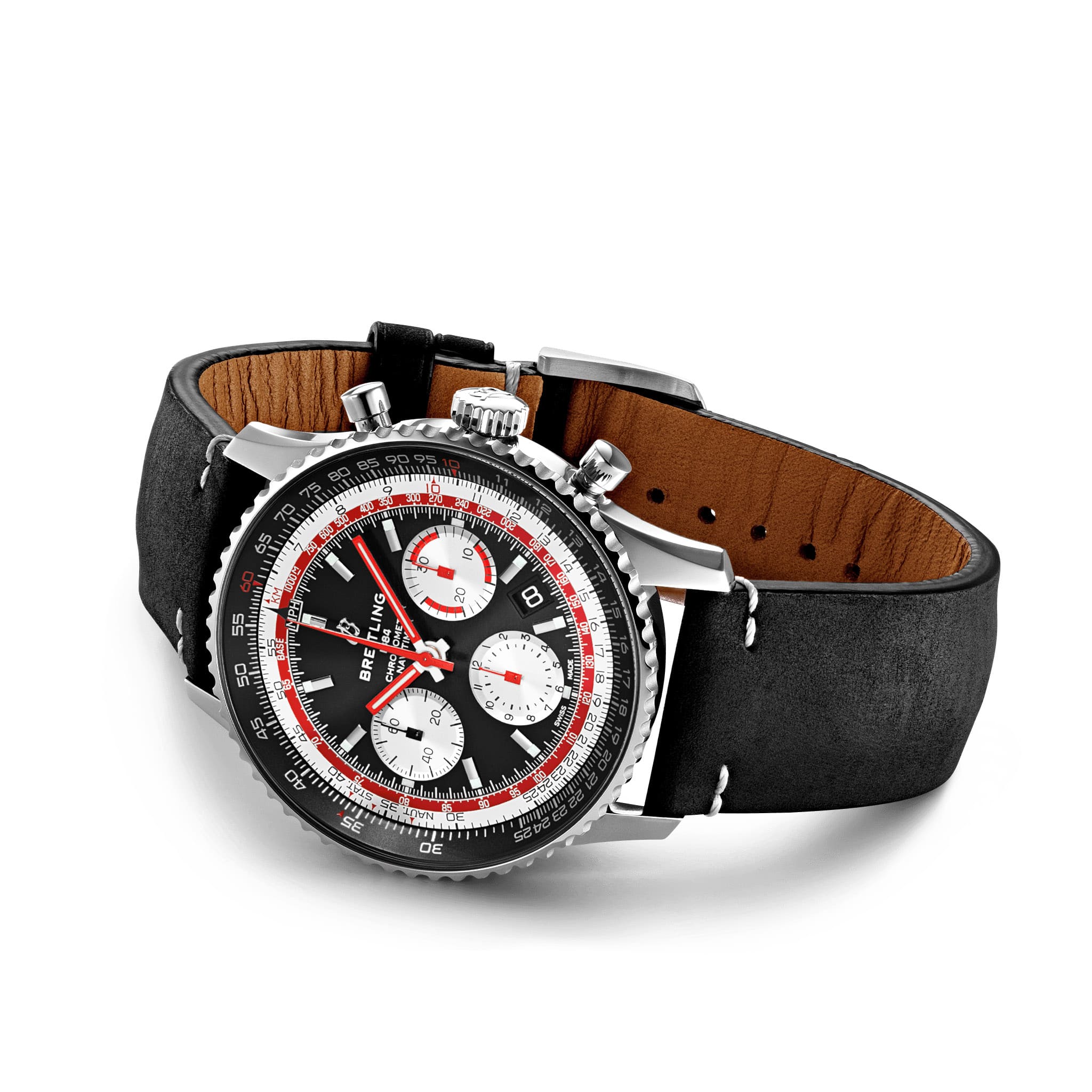 Механизм хронографа – собственная разработка легендарного производителя часов – обеспечивает исключительную точность и запас хода около 70 часов. Хронограф создан в честь национальной авиакомпании Швейцарии, откуда родом и Breitling.