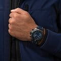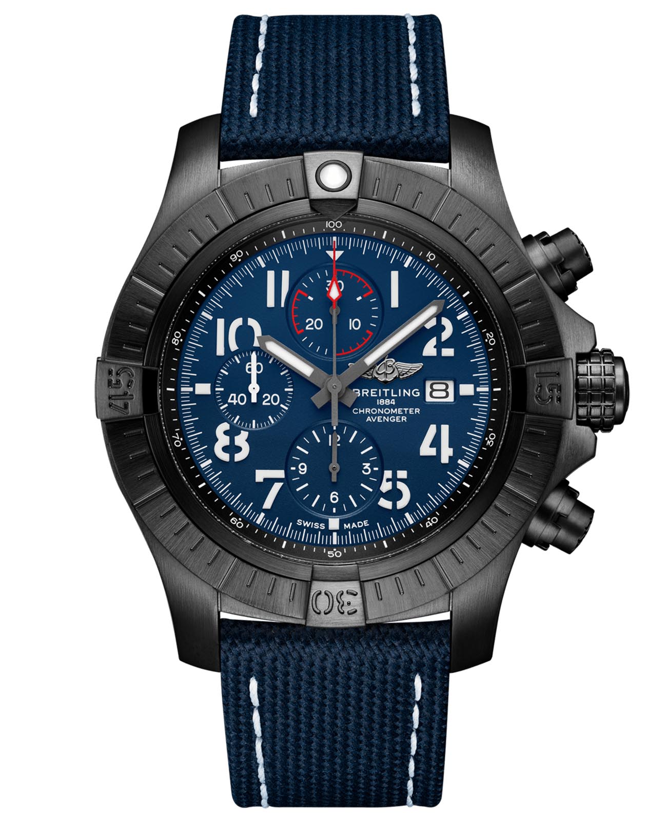 Смелый, чрезвычайно прочный и ударопрочный хронографХронографФункция позволяет измерять отрезки времени с особой точностью: часы, минуты, секунды. Верным признаком хронографа является наличие на циферблате 3 дополнительных окошек-счётчиков. Super Avenger 48 Night Mission своим прочным, но легким корпусом делает громкое заявление “я здесь”. Как настоящий Breitling Avenger, его можно использовать в перчатках и он обеспечивает непревзойденную безопасность и надежность любому воздушному искателю приключений. Модель Super Avenger Chronograph 48 в интерпретации Night Mission имеет прочный титановый корпус диаметром 48 мм с DLC-покрытиемDLC-покрытиеDiamond like carbon - одно из лучших видов покрытия, представляющее собой углерод с алмазными свойствами. На поверхность материала наносятся распавшиеся молекулы углерода, превращающиеся в плёнку из алмазоподобных связей, которая перенимает твёрдость алмаза., зеленый циферблат и черный ремешок из кожи военного образца, который крепится либо к пряжке из нержавеющей стали с DLC-покрытиемDLC-покрытиеDiamond like carbon - одно из лучших видов покрытия, представляющее собой углерод с алмазными свойствами. На поверхность материала наносятся распавшиеся молекулы углерода, превращающиеся в плёнку из алмазоподобных связей, которая перенимает твёрдость алмаза., либо к раскладной застёжкойРаскладная застёжкаТакой тип застёжки используется только на браслетах из металла. Она никогда не раскрывается полностью, происходит разделение на 2 и более частей. Раскладывающая застёжка снизит вероятность потери часов к минимуму.. Его специфические арабские цифры напоминают нанесенные по трафарету цифры, используемые на палубах авианосцев. Благодаря прочному безелюБезельВнешний ободок, закрепляющий стекло. В спортивных часах так называется поворотное кольцо с делениями на циферблате, выполняет роль таймера – замеряет отрезки времени на шкале. Неподвижный безель – элемент декора. Однонаправленно вращающийся безель на дайверских часах позволяет фиксировать моменты погружения и выныривания на поверхность. и специальному рисунку на заводной головке и кнопках хронографаХронографФункция позволяет измерять отрезки времени с особой точностью: часы, минуты, секунды. Верным признаком хронографа является наличие на циферблате 3 дополнительных окошек-счётчиков. Super Avenger Chronograph 48 Night Mission можно легко использовать в перчатках.