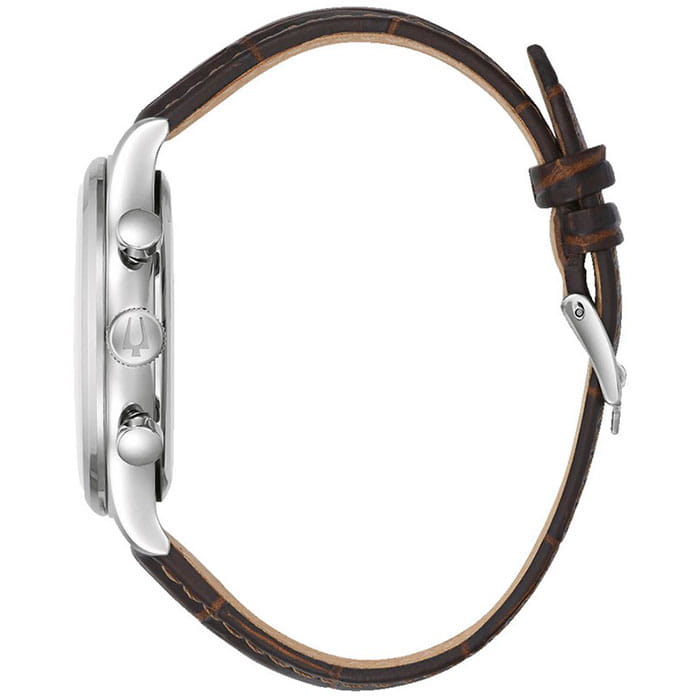 Мужские кварцевые часы-хронографХронографФункция позволяет измерять отрезки времени с особой точностью: часы, минуты, секунды. Верным признаком хронографа является наличие на циферблате 3 дополнительных окошек-счётчиков. с секундомеромСекундомерСекундоме́р — прибор, способный измерять интервалы времени с точностью до долей секунды. Bulova Precisionist 96B356 – отражающий идеальное сочетание современного дизайна, надёжности и функциональности. Корпус из нержавеющей стали серебристого цвета, диаметром 43 мм идеально сбалансирован и надежен. Минеральное стеклоМинеральное стеклоМинеральное стекло представляет собой искусственно выращенный минерал кварца. Такое стекло отличается особой устойчивостью к повреждениям и царапинам. Уступает по некоторым качествам сапфировому стеклу. защищает циферблат от царапин и устойчивое к механическим повреждениям. Кожаный ремешок на стандартной застёжке обеспечивает комфортное ношение. Окошко даты находится в положении между 4 и 5 часов. Водозащита 30 метров позволит защитить корпус от случайных брызг или капель дождя. Стрелки с люминесцентным покрытиемЛюминесцентное покрытиеПозволяет считывать показания времени в темноте. Производители наносят на стрелки, часовые индексы, безель или поверхность циферблата светонакопительный состав, дающий холодное свечение. позволяющие легко определять время даже в темноте. Эта модель – отличный выбор для тех, кто ищет сочетание стиля, качества и функциональности. Часы станут не только полезным аксессуаром, но и выразительным элементом вашего имиджа.