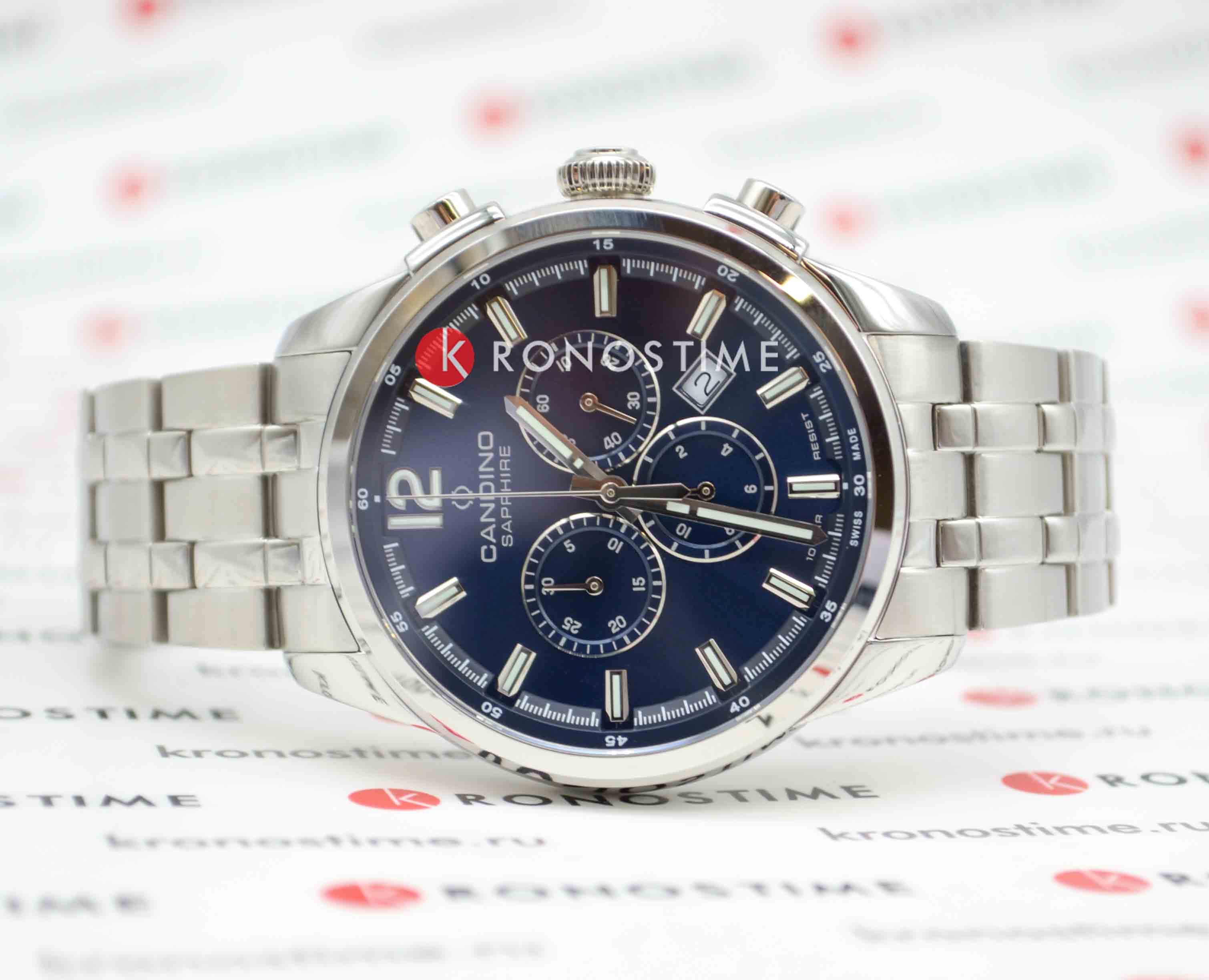 Швейцарские мужские наручные часы-хронографХронографФункция позволяет измерять отрезки времени с особой точностью: часы, минуты, секунды. Верным признаком хронографа является наличие на циферблате 3 дополнительных окошек-счётчиков. Candino Chronograph C4744/2, кварцевый механизм с высокой точностью. Сапфировое стеклоСапфировое стеклоПрочный и надёжный материал из кристалла сапфира синтетического происхождения, характеризующийся особой твёрдостью и устойчивостью к царапинам и повреждениям. устойчивое к появлению царапин, обладающее высокой прозрачностью. Часы, минуты, секунды. Окошко даты находится в положении между 4 и 5 часов. Класс водозащиты: 100 метров, позволит плавать, нырять и заниматься другими водными видами спорта. Раскладная застёжкаРаскладная застёжкаТакой тип застёжки используется только на браслетах из металла. Она никогда не раскрывается полностью, происходит разделение на 2 и более частей. Раскладывающая застёжка снизит вероятность потери часов к минимуму. с фиксатором. Корпус часов изготовлен из нержавеющей стали. Стрелки и метки с люминесцентным покрытиемЛюминесцентное покрытиеПозволяет считывать показания времени в темноте. Производители наносят на стрелки, часовые индексы, безель или поверхность циферблата светонакопительный состав, дающий холодное свечение..