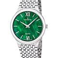 Мужские кварцевые часы Candino Series 1947 — это сочетание минимализма, швейцарского качества и современного дизайна. Корпус диаметром 39 мм и толщиной всего 6 мм выполнен из нержавеющей стали 316L, что делает часы особенно лёгкими и комфортными в ношении. Циферблат зелёного цвета оформлен двумя стрелками, без индикации даты, что придаёт дизайну чистоту и элегантность. Циферблат защищён сапфировым стекломСапфировое стеклоПрочный и надёжный материал из кристалла сапфира синтетического происхождения, характеризующийся особой твёрдостью и устойчивостью к царапинам и повреждениям., устойчивым к царапинам. Механизм — кварцевый произведённый в Швейцарии. Часы оснащены стальным браслетом с застёжкой «бабочка» с кнопкамиЗастёжка "бабочка"Такой вид застёжки дополняется предохранителями, помогающими избежать случайного раскрытия браслета. Обладают изящным исполнением. . Водонепроницаемость 50 м позволяет использовать часы в повседневных условиях. Гарантия — 2 года. Идеальный выбор для тех, кто ценит лаконичный стиль, точность и надёжность.