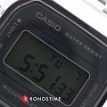 Серебристая цветовая гамма подойдёт к любой одежде, предоставляя простор для экспериментов. Цифровой дисплей оснащён функцией подсветки, облегчающей считывание информации в темноте. Среди дополнительных возможностей числятся будильник, календарь, секундомер. Ударопрочный корпус сделан из полимерного пластика. Минеральное стекло отличается устойчивостью к появлению царапин. Габариты: 38,6 x 36,3 x 9,6 мм.