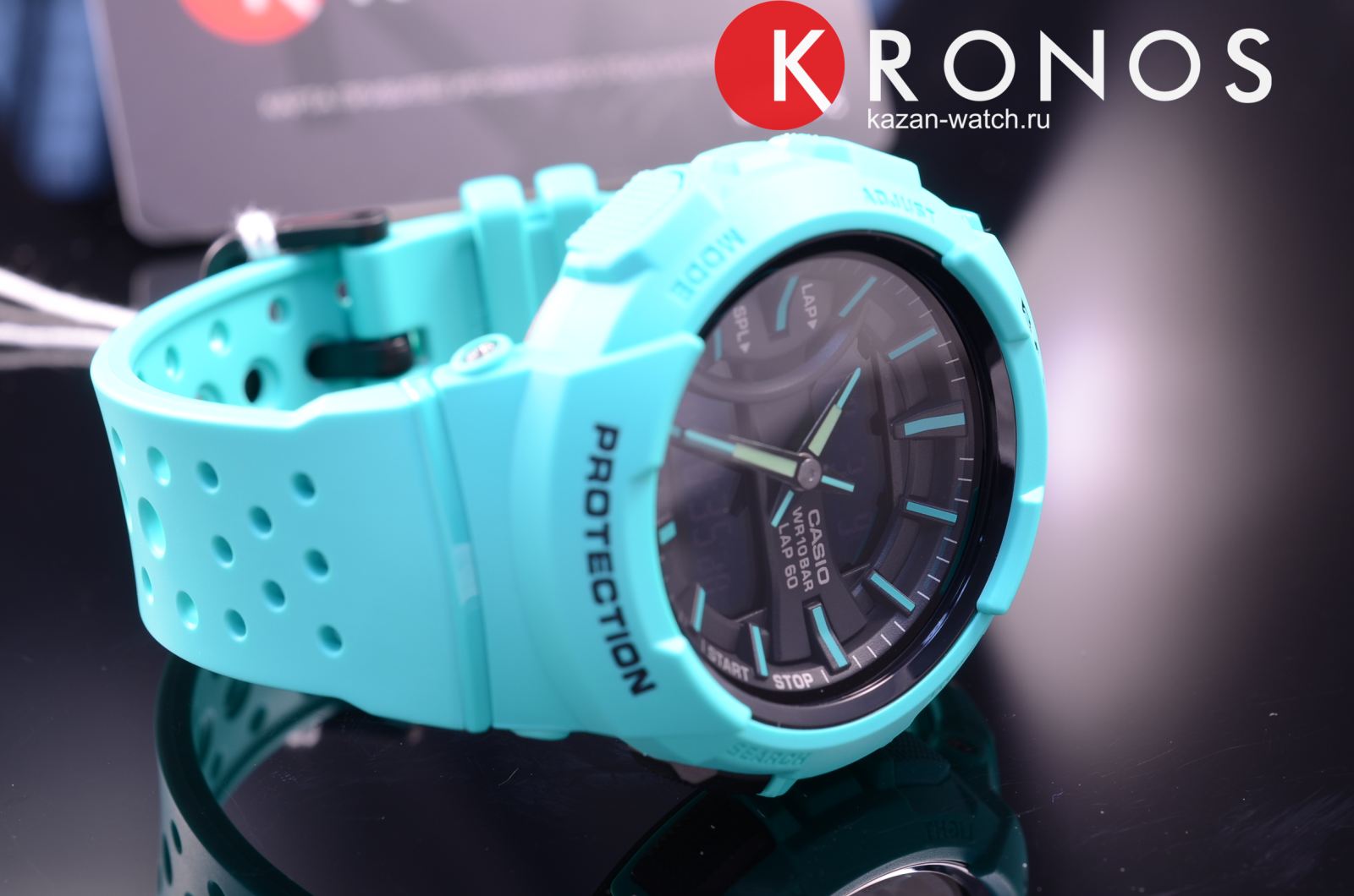 Модель в ярко-бирюзовом исполнении является полезным аксессуаром для любительниц бега, благодаря которому можно в разы повысить эффективность тренировок. Функция Lap Memory 60™ позволяет фиксировать и хранить информацию о дате пробежек, показатели времени круга. Память рассчитана на 60 этапов. Японский кварцевый механизм. Батарейка с 3-летним сроком службы. Минеральное стекло. Полимерный ударопрочный корпусУдаропрочный корпусМеханизм заключён в корпус, выполненный из современных материалов, устойчивых к ударам, механическим повреждениям и падению с высоты: инновационный пластик, карбон, нержавеющая сталь, титан.. Циферблат со светодиодной подсветкойСветодиодная подсветкаСветодиодная или LED-подсветка обеспечивает появление яркого холодного свечения за счёт LED-элементов - маленьких лампочек. Они потребляют минимальное количество энергии, чаще всего можно встретить 1 светодиод, в нижней части циферблата.. Будильник с функцией «подремать». ХронографХронографФункция позволяет измерять отрезки времени с особой точностью: часы, минуты, секунды. Верным признаком хронографа является наличие на циферблате 3 дополнительных окошек-счётчиков., секундомер, таймер, календарь. Габариты: 46,4 x 42,6 x 15,3 мм.