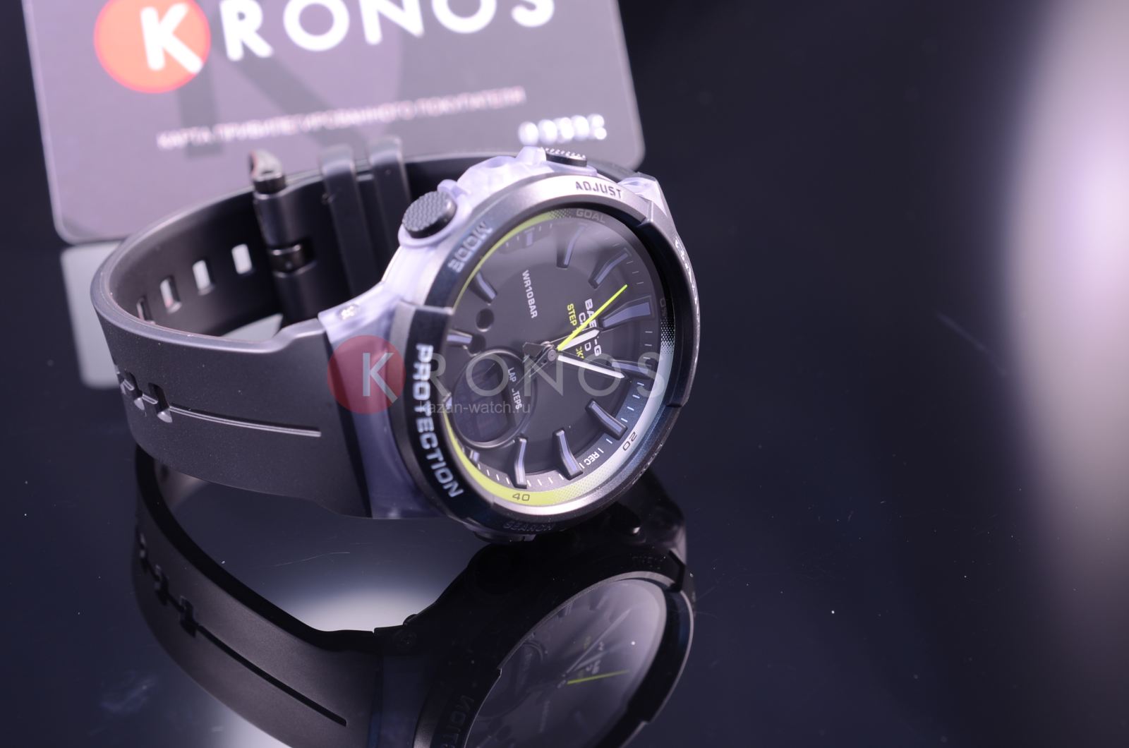 Наручные часы оснащены шагомером, счётчик измеряет количество шагов от 0 до 999999. Предусмотрена возможность установить цель на день. Размечена специальная шкала вокруг безеляБезельВнешний ободок, закрепляющий стекло. В спортивных часах так называется поворотное кольцо с делениями на циферблате, выполняет роль таймера – замеряет отрезки времени на шкале. Неподвижный безель – элемент декора. Однонаправленно вращающийся безель на дайверских часах позволяет фиксировать моменты погружения и выныривания на поверхность., достижение отметки «Goal» означает, что план выполнен. Ударопрочный корпусУдаропрочный корпусМеханизм заключён в корпус, выполненный из современных материалов, устойчивых к ударам, механическим повреждениям и падению с высоты: инновационный пластик, карбон, нержавеющая сталь, титан. сделан из прочного полимера, устойчив к падению, вибрации. Работу японского кварцевого механизма обеспечивает батарейка, рассчитанная на 2 года. Минеральное закаленное стекло. Светодиодная подсветкаСветодиодная подсветкаСветодиодная или LED-подсветка обеспечивает появление яркого холодного свечения за счёт LED-элементов - маленьких лампочек. Они потребляют минимальное количество энергии, чаще всего можно встретить 1 светодиод, в нижней части циферблата.. Водостойкость 10 бар. Включение и выключение звука кнопок. Автокалендарь, будильник, секундомер, таймер обратного отсчёта. Указание второго часового пояса. Габариты: 42,6 x 45,2 x 13,3 мм.
