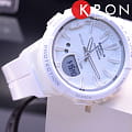 Наручные часы выполнены в лаконичном белом цвете, делая модель универсальным вариантом для любого образа. Они оснащены шагомером, измеряющим количество шагов от 0 до 999999. Мы можем наблюдать отображение пройденных шагов за 5 часов, есть возможность установить ежедневную цель от 1000 до 50000 шагов. Полимерный ударопрочный корпусУдаропрочный корпусМеханизм заключён в корпус, выполненный из современных материалов, устойчивых к ударам, механическим повреждениям и падению с высоты: инновационный пластик, карбон, нержавеющая сталь, титан. отличается устойчивостью к падению и повреждениям, которые неизбежно возникают на занятиях спортом. Японский кварцевый механизм с точностью хода +/- 15 секунд в месяц. Срок службы батарейки составляет 2 года. Минеральное стекло. Светодиодная подсветкаСветодиодная подсветкаСветодиодная или LED-подсветка обеспечивает появление яркого холодного свечения за счёт LED-элементов - маленьких лампочек. Они потребляют минимальное количество энергии, чаще всего можно встретить 1 светодиод, в нижней части циферблата.. Включение и выключение звука кнопок. Автоматический календарь до 2099 года, 5 будильников, отображение второго часового пояса, секундомер, таймер обратного отсчёта. Габариты: 42,6 x 45,2 x 13,3 мм.