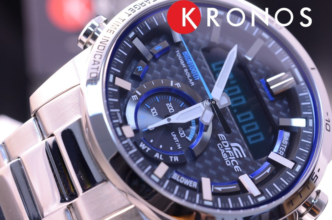 Наручные часы выполнены в автомобильной тематике, тёмный циферблат с карбоновой текстурой дополнен синими и голубыми элементами. Аналого-цифровая модель со спортивным характером имеет ударопрочный корпусУдаропрочный корпусМеханизм заключён в корпус, выполненный из современных материалов, устойчивых к ударам, механическим повреждениям и падению с высоты: инновационный пластик, карбон, нержавеющая сталь, титан., из нержавеющей стали 316L, защищающий механизм от повреждений. Это часы на солнечной батарее , получающие питание от энергии солнечного света, заряд часов можно отслеживать с помощью специального индикатора. Дополнительные функции: BluetoothBluetoothСовременная технология, позволяющая синхронизировать часы с телефоном и переносить данные. Часы с Bluetooth расширяют возможности вашего смартфона и делают его использование ещё более удобным., автоматический календарь, будильник, секундомер, мировое времяМировое время Полезное часовое усложнение, отображающее время в основных городах и известных областях по всему миру, оно связано с часовыми поясами, удобно для путешественников и бизнесменов. , поиск телефона. Отображение средней скорости пройденного маршрута. Минеральное стекло. Светодиодная подсветкаСветодиодная подсветкаСветодиодная или LED-подсветка обеспечивает появление яркого холодного свечения за счёт LED-элементов - маленьких лампочек. Они потребляют минимальное количество энергии, чаще всего можно встретить 1 светодиод, в нижней части циферблата.. Водонепроницаемость 10 бар. Габариты: 53,5 x 49,2 x 13,7 мм.