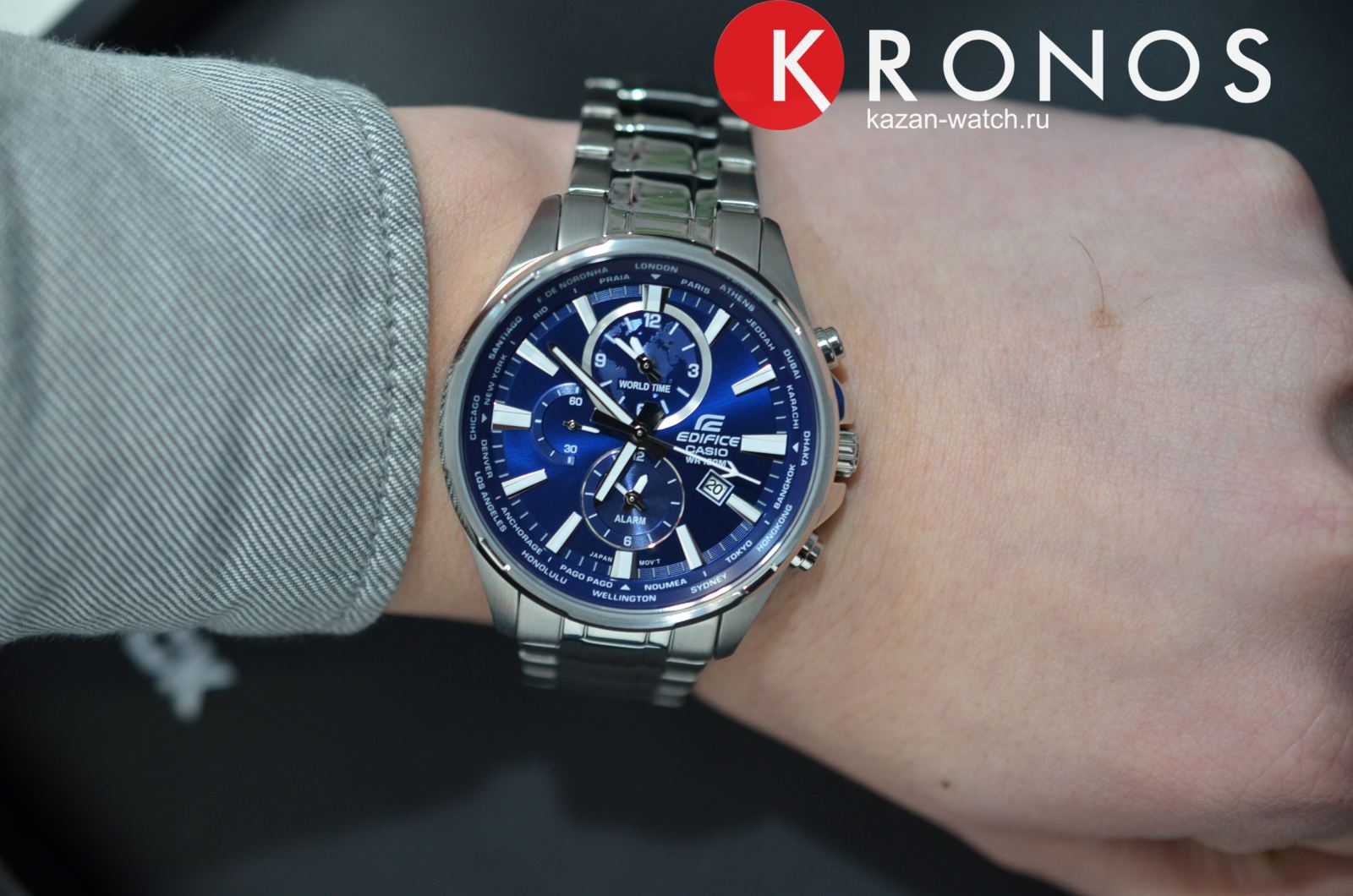 Мужские наручные часы Casio Edifice надежные и практичные. Кварцевый японский механизм Miyota. Отображение времени в различных часовых поясах с обозначением 29 основных городов в этих зонах и универсальное время. (в режиме «текущего времени» отображается индикатором на «12 часах»). Будильник (устанавливается и отображается индикатором на «6 часах»).  Стрелки и индексы с светонакопительным нанесением. Корпус и браслет выполнены из высококачественной стали с антикоррозийными свойствами. Минеральное стекло устойчиво к появлению царапин. Циферблат - рельефный, стилизованный под картографическое изображение земного шара. Водонепроницаемость (10 Бар).