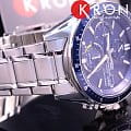 Chronograph. Питание от солнечной энергии, индикатор заряда батареи. Светонакопительное покрытие необрит продолжает светиться в темноте даже после непродолжительного пребывания на свету. Часы-хронограф с секундомером с точностью показаний 1с и временем измерения 30мин. 12-ти и 24-х часовой формат времени. Заводная головка с защитой. Задняя крышка с винтовым фиксатором. Раскладывающаяся застежка, расстегиваемая одним касанием.