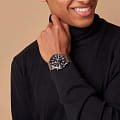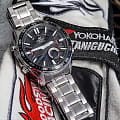 Тёмный циферблат напоминает о приборной панели автомобиля, расставлены красные цветовые акценты. Необычное исполнение переплетается с использованием современных материалов, благодаря чему часы сохраняют отменную точность хода и безупречный внешний вид на долгие годы. Не подведёт и батарейка, питающая энергией кварцевый механизм, она рассчитана на 10 лет службы. Закаленное минеральное стекло. Водонепроницаемость 100 метров. Люминесцентная подсветкаЛюминесцентное покрытиеПозволяет считывать показания времени в темноте. Производители наносят на стрелки, часовые индексы, безель или поверхность циферблата светонакопительный состав, дающий холодное свечение.. Нержавеющая сталь 316L. Алюминиевый безельБезельВнешний ободок, закрепляющий стекло. В спортивных часах так называется поворотное кольцо с делениями на циферблате, выполняет роль таймера – замеряет отрезки времени на шкале. Неподвижный безель – элемент декора. Однонаправленно вращающийся безель на дайверских часах позволяет фиксировать моменты погружения и выныривания на поверхность.. Секундомер, календарь, будильник, записная книжка на 30 записей. Габариты: 51,6 x 46,6 x 14,2 мм.