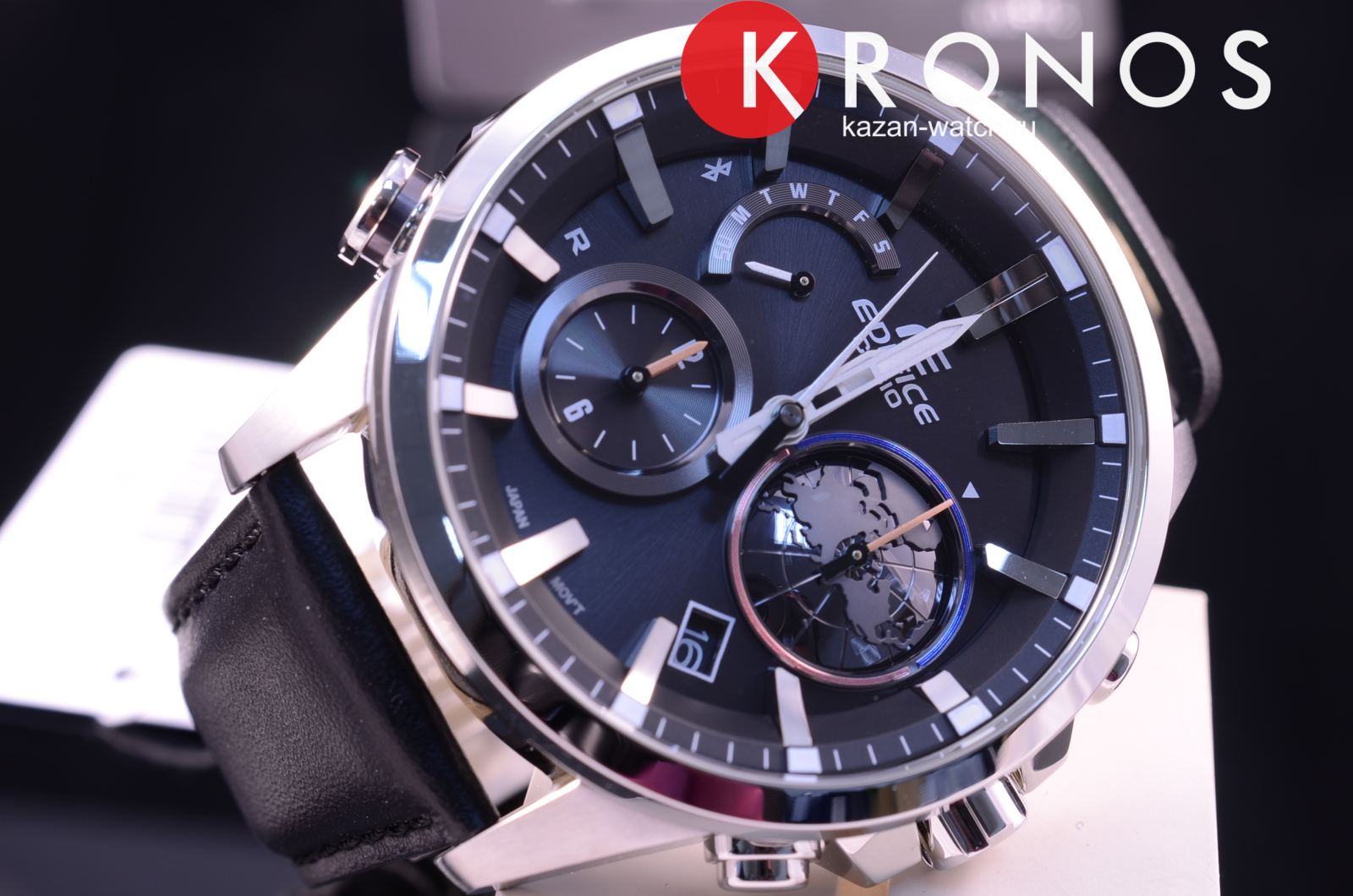 Edifice Smartphone Link. Питание от солнечной энергии Tough Solar - солнечные батарейки большой мощности, индикатор низкого заряда батареи. Функция автоматического сохранения энергии. Время работы аккумулятора без подзарядки приблизительно 5 месяцев, при включенной функции сохранения энергии приблизительно 19 месяцев. Светонакопительное покрытие необрит продолжает светиться в темноте даже после непродолжительного пребывания на свету. Беспроводная технология Bluetooth® 4.0 со сверхнизким потреблением энергии для синхронизации со смартфоном. При подключении к смартфону часы корректируют текущее время, а также копируют настройки мирового времени. Мировое время – 300 городов. Функция включения/отключения летнего времени. Функция поиска телефона. Второй часовой пояс. Индикатор день/ночь. Ретроградный указатель дня недели. Завинчивающаяся заводная головка с защитой.