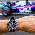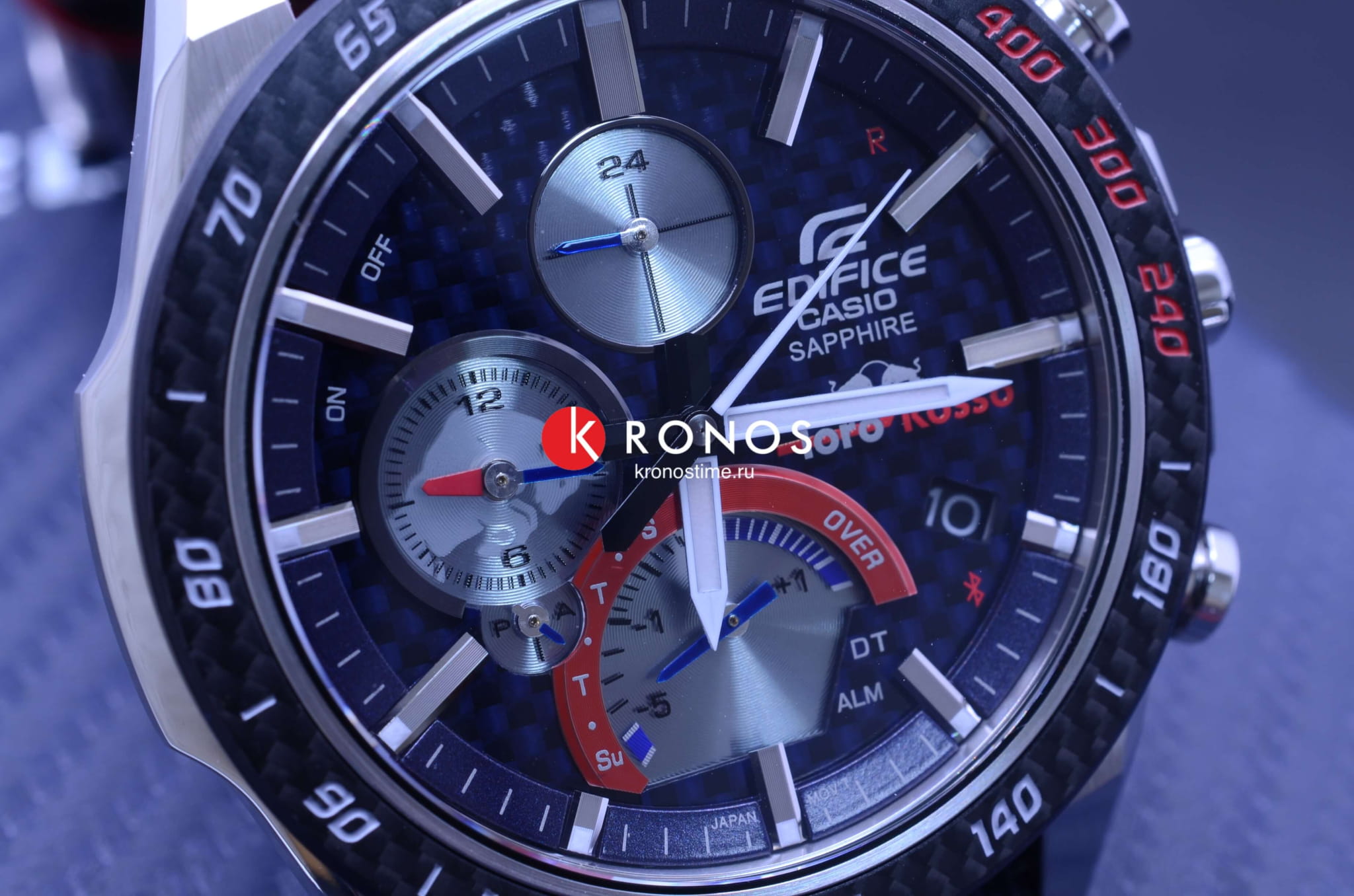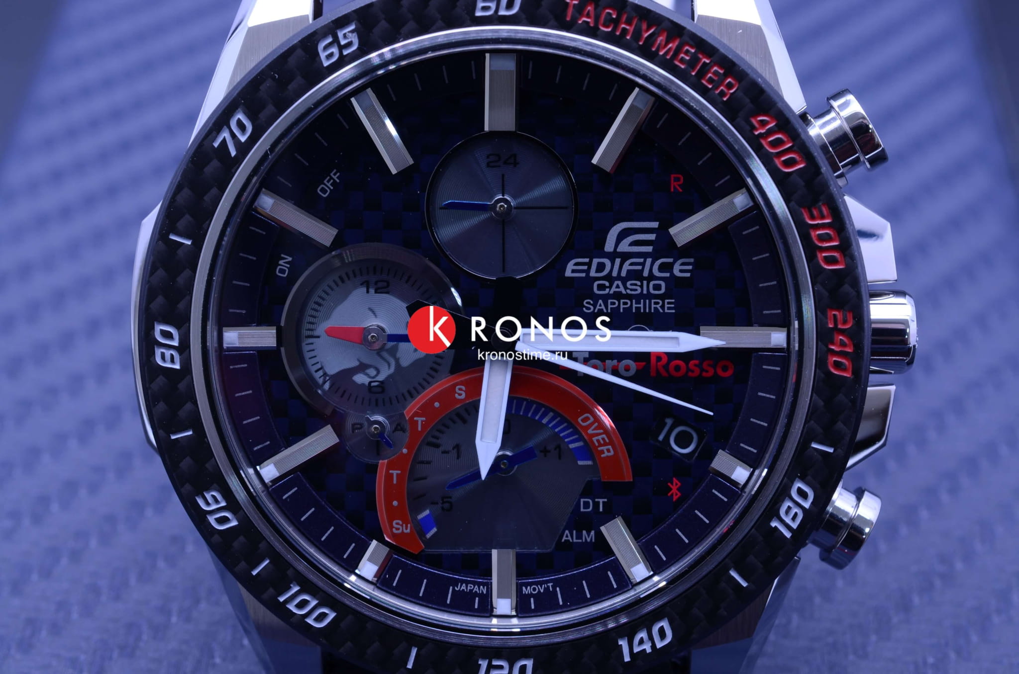 Для оформления премиальной модели были выбраны фирменные оттенки Scuderia Torro Rosso - синий, серебристый, красный. Оригинальным элементом стал тканевый ремешок со вставками из кевлара. Инженеры Casio оснастили часы тонким японским кварцевым механизмом, что позволило добиться появлению корпуса всего в 8,9 мм. Модель получает питание от энергии любого источника света, реализуя технологию . Индикатор состояния элемента питания подскажет, когда часам будет необходима подзарядка. Режим экономии энергии. Карбоновый безельБезельВнешний ободок, закрепляющий стекло. В спортивных часах так называется поворотное кольцо с делениями на циферблате, выполняет роль таймера – замеряет отрезки времени на шкале. Неподвижный безель – элемент декора. Однонаправленно вращающийся безель на дайверских часах позволяет фиксировать моменты погружения и выныривания на поверхность. и циферблат. Водостойкость 10 бар. Ударопрочный корпусУдаропрочный корпусМеханизм заключён в корпус, выполненный из современных материалов, устойчивых к ударам, механическим повреждениям и падению с высоты: инновационный пластик, карбон, нержавеющая сталь, титан. из стали 316L. Сапфировое стекло с антибликовым покрытием. Функции: BluetoothBluetoothСовременная технология, позволяющая синхронизировать часы с телефоном и переносить данные. Часы с Bluetooth расширяют возможности вашего смартфона и делают его использование ещё более удобным. нового поколения, секундомер, память на 200 результатов, поиск телефона, мировое времяМировое время Полезное часовое усложнение, отображающее время в основных городах и известных областях по всему миру, оно связано с часовыми поясами, удобно для путешественников и бизнесменов. , будильник, календарь. Люминесцентная подсветка NeobriteПодсветка NeobriteИспользование светонакопительных составов на основе сульфида цинка или алюмината стронция, яркий свет можно наблюдать на протяжении 6-10 часов после «зарядки» часов около источника света.. Габариты: 49,9 x 45,6 x 8,9 мм.