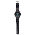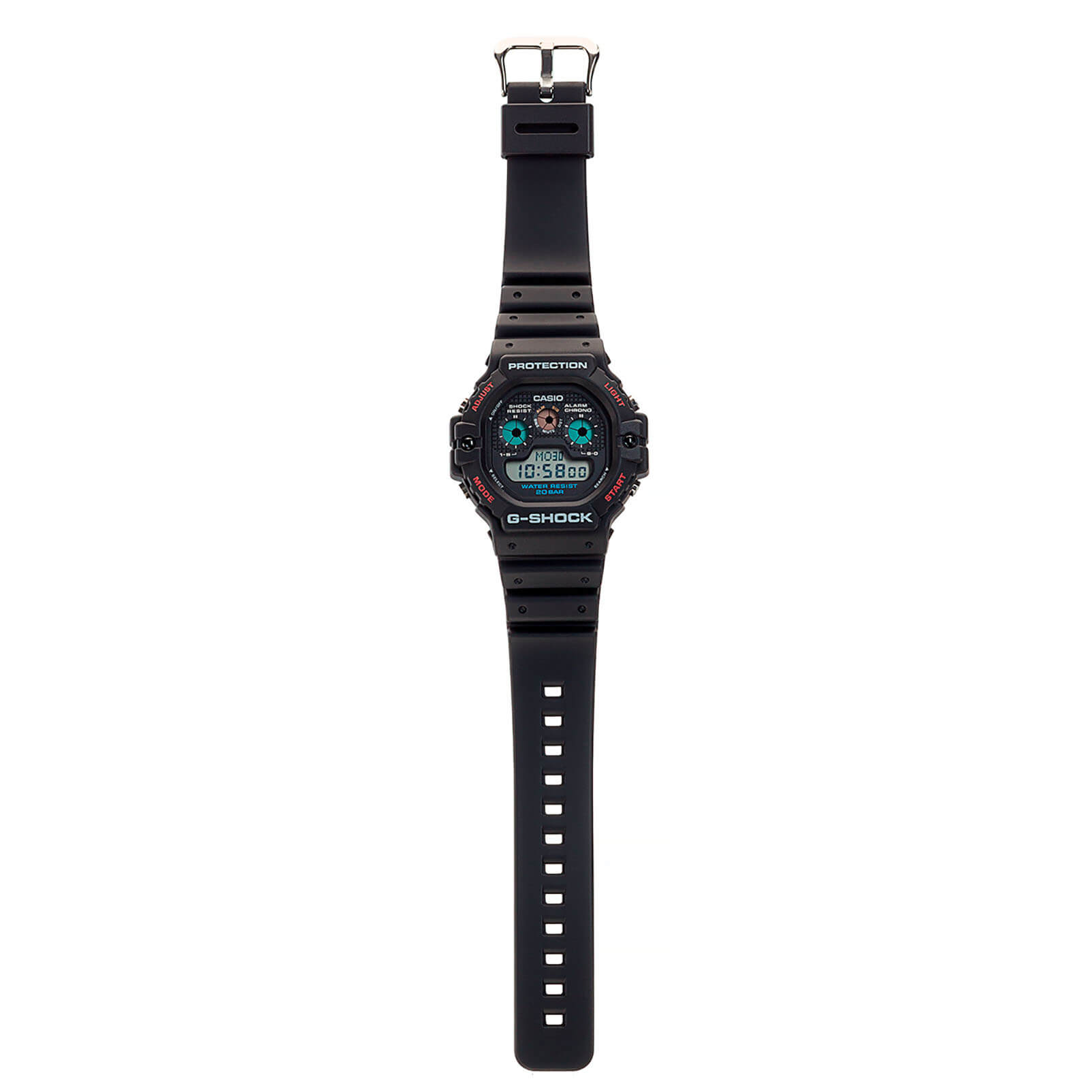 Внешний вид часов с чёрным полимерным ремешком остался прежним, изменения коснулись лишь материалов и дополнительных функциональных особенностей. Внимание притягивает необычный циферблат с тремя функциональными окошками над основным дисплеем. Тёмная расцветка разбавлена элементами голубого, красного и белого цвета. Кварцевый механизм японского производства получает питание от батарейки, срок которой рассчитан на 5 лет. Ударопрочный корпусУдаропрочный корпусМеханизм заключён в корпус, выполненный из современных материалов, устойчивых к ударам, механическим повреждениям и падению с высоты: инновационный пластик, карбон, нержавеющая сталь, титан. из полимерного пластика, устойчивый к большим нагрузкам. Минеральное стеклоМинеральное стеклоМинеральное стекло представляет собой искусственно выращенный минерал кварца. Такое стекло отличается особой устойчивостью к повреждениям и царапинам. Уступает по некоторым качествам сапфировому стеклу.. Водостойкость 200 метров. Электролюминесцентная подсветкаЭлектролюминесцентная подсветкаЭлектролюминесцентная панель устанавливается под ЖК-экраном часов, при нажатии кнопки электричество преобразуется в свет за счёт подачи напряжения на атомы фосфора, такой тип подсветки позволяет освещать весь циферблат. циферблата. СекундомерСекундомерСекундоме́р — прибор, способный измерять интервалы времени с точностью до долей секунды., хронографХронографФункция позволяет измерять отрезки времени с особой точностью: часы, минуты, секунды. Верным признаком хронографа является наличие на циферблате 3 дополнительных окошек-счётчиков., таймерТаймерОтсчитывает секунды в обратном направлении в заданном интервале времени. обратного отсчёта с автоповтором, мировое времяМировое время Полезное часовое усложнение, отображающее время в основных городах и известных областях по всему миру, оно связано с часовыми поясами, удобно для путешественников и бизнесменов. , 5 будильниковБудильникБуди́льник — часы, в заданный момент времени подающие звуковой, световой и/или в редких случаях другой сигнал., автоматический календарь до 2099 года. Габариты: 51,4 x 46,8 x 15,5 мм.