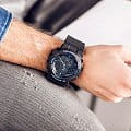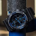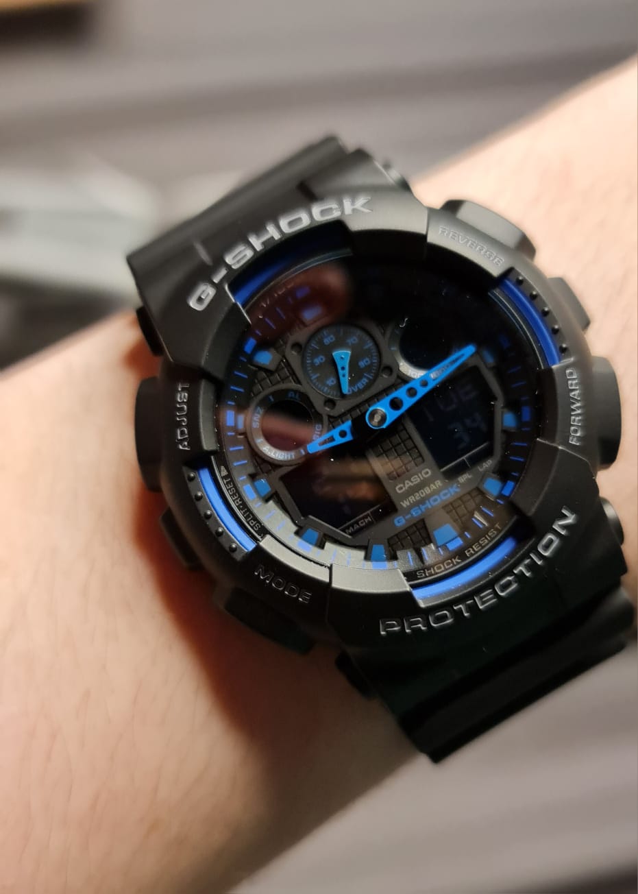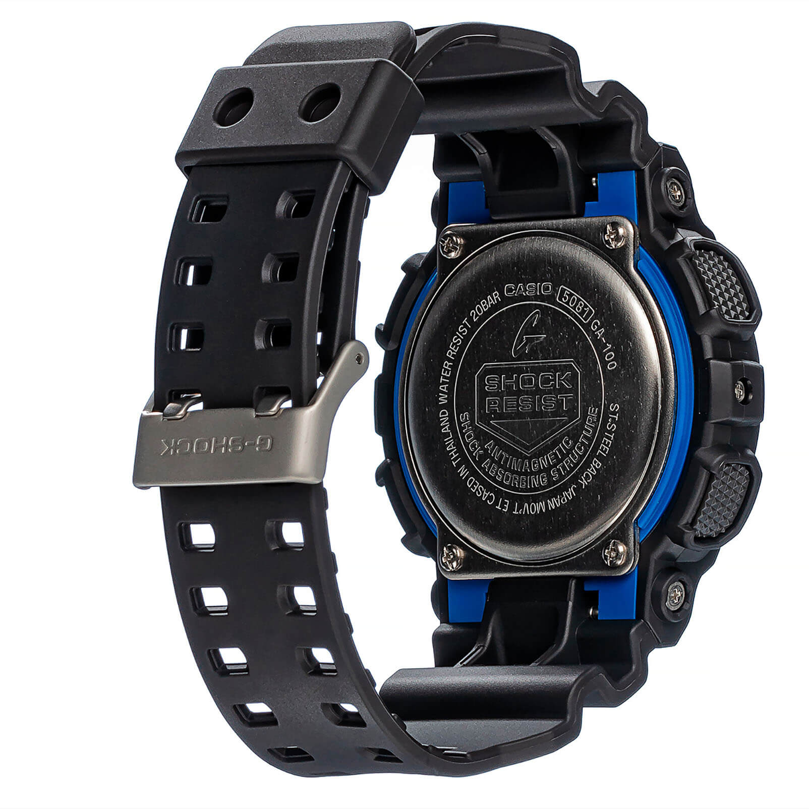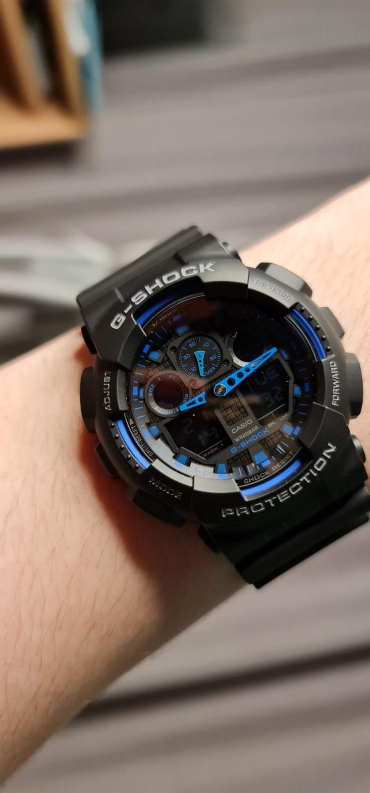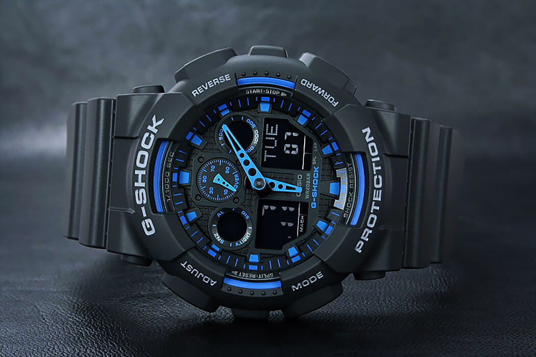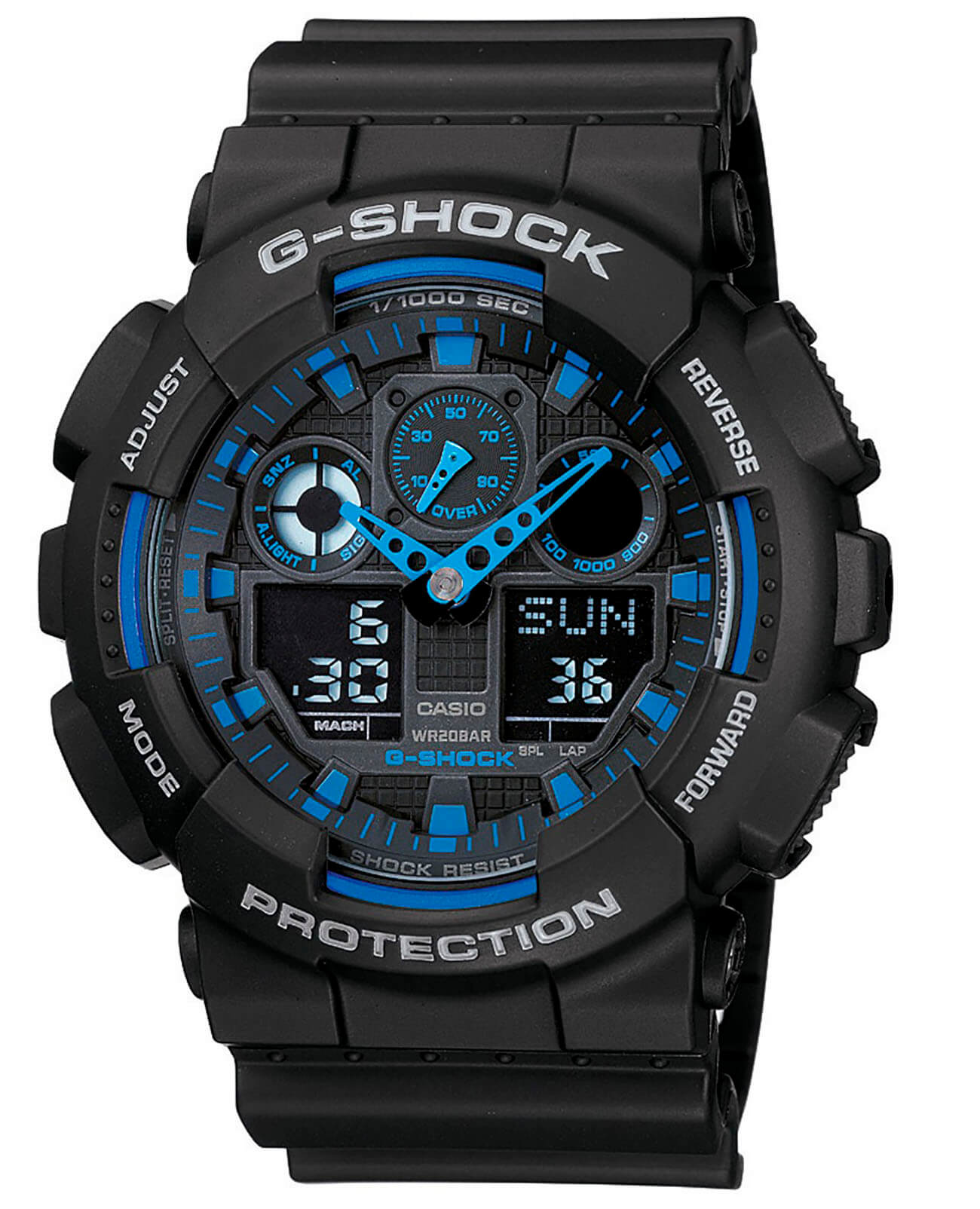 Японские мужские часы-хронографХронографФункция позволяет измерять отрезки времени с особой точностью: часы, минуты, секунды. Верным признаком хронографа является наличие на циферблате 3 дополнительных окошек-счётчиков. Casio G-Shock GA-100-1A2 из коллекции G-Shock. Противоударный пластиковый корпус с карбоновыми волокнами более прочный и, в то же время, более легкий. Минеральное стеклоМинеральное стеклоМинеральное стекло представляет собой искусственно выращенный минерал кварца. Такое стекло отличается особой устойчивостью к повреждениям и царапинам. Уступает по некоторым качествам сапфировому стеклу. устойчивое к появлению царапин, обладающее высокой прозрачностью. Ударопрочный корпусУдаропрочный корпусМеханизм заключён в корпус, выполненный из современных материалов, устойчивых к ударам, механическим повреждениям и падению с высоты: инновационный пластик, карбон, нержавеющая сталь, титан. защищает механизм от ударов и вибрации. Многокомпонентный циферблат состоит из цифровых окошек указателей числа и дня недели, а также индикатора режима работы часов, который расположен в позиции 9 часов и выполнен в виде пропеллера. Светодиодная подсветкаСветодиодная подсветкаСветодиодная или LED-подсветка обеспечивает появление яркого холодного свечения за счёт LED-элементов - маленьких лампочек. Они потребляют минимальное количество энергии, чаще всего можно встретить 1 светодиод, в нижней части циферблата. освещает весь циферблат. Мировое времяМировое время Полезное часовое усложнение, отображающее время в основных городах и известных областях по всему миру, оно связано с часовыми поясами, удобно для путешественников и бизнесменов. – 48 городов (29 часовых поясов). СекундомерСекундомерСекундоме́р — прибор, способный измерять интервалы времени с точностью до долей секунды. с точностью измерения 1/100 секунды и измерением до 23 часов 59 минут 59,99 cек. ТаймерТаймерОтсчитывает секунды в обратном направлении в заданном интервале времени. обратного отсчета (диапазон времени 24 часа), автоматический календарь, 12/24 отображение времени. 5 будильниковБудильникБуди́льник — часы, в заданный момент времени подающие звуковой, световой и/или в редких случаях другой сигнал., ежечасный сигнал. Класс водозащиты: 200 метров, позволит плавать, нырять и заниматься другими водными видами спорта. Ремешок из полимерного материала на стандартной застежке.