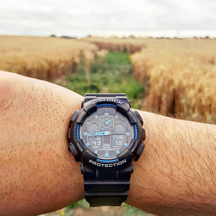 Японские мужские часы Casio G-Shock GA-100-1A2NDR (GA-100-1A2DR) с хронографом
