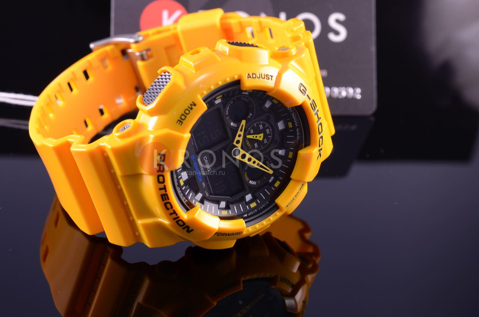 Японские мужские часы Casio G-Shock GA-100A-9ADR (GA-100A-9A) с хронографом