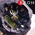 Стильный аксессуар чёрного цвета имеет привлекательные акценты золотистого цвета, что смягчает его брутальный вид. Часы с крупными стрелками и метками обеспечивают идеальную читаемость показателей времени, кнопка подсветки для удобства вынесена в нижнюю часть ударопрочного корпусаУдаропрочный корпусМеханизм заключён в корпус, выполненный из современных материалов, устойчивых к ударам, механическим повреждениям и падению с высоты: инновационный пластик, карбон, нержавеющая сталь, титан.. Он, как и ремешок, выполнен из полимерного материала, выдерживающим удары и падения. Японский кварцевый механизм получает питание от батарейки, отличающейся повышенным сроком службы до 5 лет. Закаленное минеральное стекло. Яркая светодиодная подсветкаСветодиодная подсветкаСветодиодная или LED-подсветка обеспечивает появление яркого холодного свечения за счёт LED-элементов - маленьких лампочек. Они потребляют минимальное количество энергии, чаще всего можно встретить 1 светодиод, в нижней части циферблата.. Водозащита 200 метров. Функция перемещения стрелок для быстрого доступа к данным малых счётчиков. Таймер обратного отсчёта, UTCUTCВсемирное кординационное время, не имеющее привязки к географическому положению Гринвича, основывается на атомном отсчёте времени. Регулировка времени осуществляется более точно, чем устаревшее GMT.