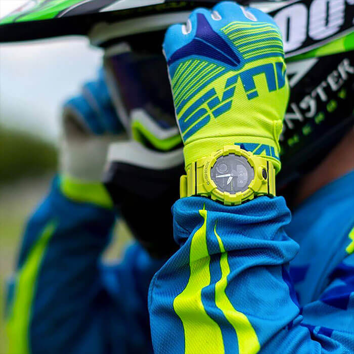Стильный аксессуар в чёрно-жёлтом исполнении будет ярким дополнением к образу. Часы отличаются пластиковым противоударным корпусомУдаропрочный корпусМеханизм заключён в корпус, выполненный из современных материалов, устойчивых к ударам, механическим повреждениям и падению с высоты: инновационный пластик, карбон, нержавеющая сталь, титан., устойчивым к повреждениям, вибрации, падению с высоты. Они сохраняют водонепроницаемость при давлении 20 бар. Среди часовых усложнений: таймер, секундомер, BluetoothBluetoothСовременная технология, позволяющая синхронизировать часы с телефоном и переносить данные. Часы с Bluetooth расширяют возможности вашего смартфона и делают его использование ещё более удобным., автоматический календарь, мировое времяМировое время Полезное часовое усложнение, отображающее время в основных городах и известных областях по всему миру, оно связано с часовыми поясами, удобно для путешественников и бизнесменов. , функция мирового времениМировое время Полезное часовое усложнение, отображающее время в основных городах и известных областях по всему миру, оно связано с часовыми поясами, удобно для путешественников и бизнесменов. . Двойная подсветка, светодиоднаяСветодиодная подсветкаСветодиодная или LED-подсветка обеспечивает появление яркого холодного свечения за счёт LED-элементов - маленьких лампочек. Они потребляют минимальное количество энергии, чаще всего можно встретить 1 светодиод, в нижней части циферблата. и люминесцентнаяЛюминесцентное покрытиеПозволяет считывать показания времени в темноте. Производители наносят на стрелки, часовые индексы, безель или поверхность циферблата светонакопительный состав, дающий холодное свечение.. Минеральное стекло устойчиво к царапинам. Габариты: 54,1 x 48,6 x 15,5 мм.