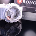Белоснежная расцветка великолепно гармонирует с контрастными элементами циферблата. Несмотря на внушительный вес, модель отличается лёгким весом и комфортно сидит на запястье. Наручные часы обладают противоударным корпусомУдаропрочный корпусМеханизм заключён в корпус, выполненный из современных материалов, устойчивых к ударам, механическим повреждениям и падению с высоты: инновационный пластик, карбон, нержавеющая сталь, титан., который стойко переносит удары и падения с высоты. Он надёжно защищает японский кварцевый механизм, благодаря которому часы показывают время с абсолютной точностью. Батарейка рассчитана на 3 года работы. Автоматическая светодиодная подсветкаСветодиодная подсветкаСветодиодная или LED-подсветка обеспечивает появление яркого холодного свечения за счёт LED-элементов - маленьких лампочек. Они потребляют минимальное количество энергии, чаще всего можно встретить 1 светодиод, в нижней части циферблата. циферблата. Минеральное стекло. Сохранение водонепроницаемости до 20 бар. Функции: мировое времяМировое время Полезное часовое усложнение, отображающее время в основных городах и известных областях по всему миру, оно связано с часовыми поясами, удобно для путешественников и бизнесменов. , таймер обратного отсчёта, хронографХронографФункция позволяет измерять отрезки времени с особой точностью: часы, минуты, секунды. Верным признаком хронографа является наличие на циферблате 3 дополнительных окошек-счётчиков., будильник, автоматический календарь, UTCUTCВсемирное кординационное время, не имеющее привязки к географическому положению Гринвича, основывается на атомном отсчёте времени. Регулировка времени осуществляется более точно, чем устаревшее GMT.