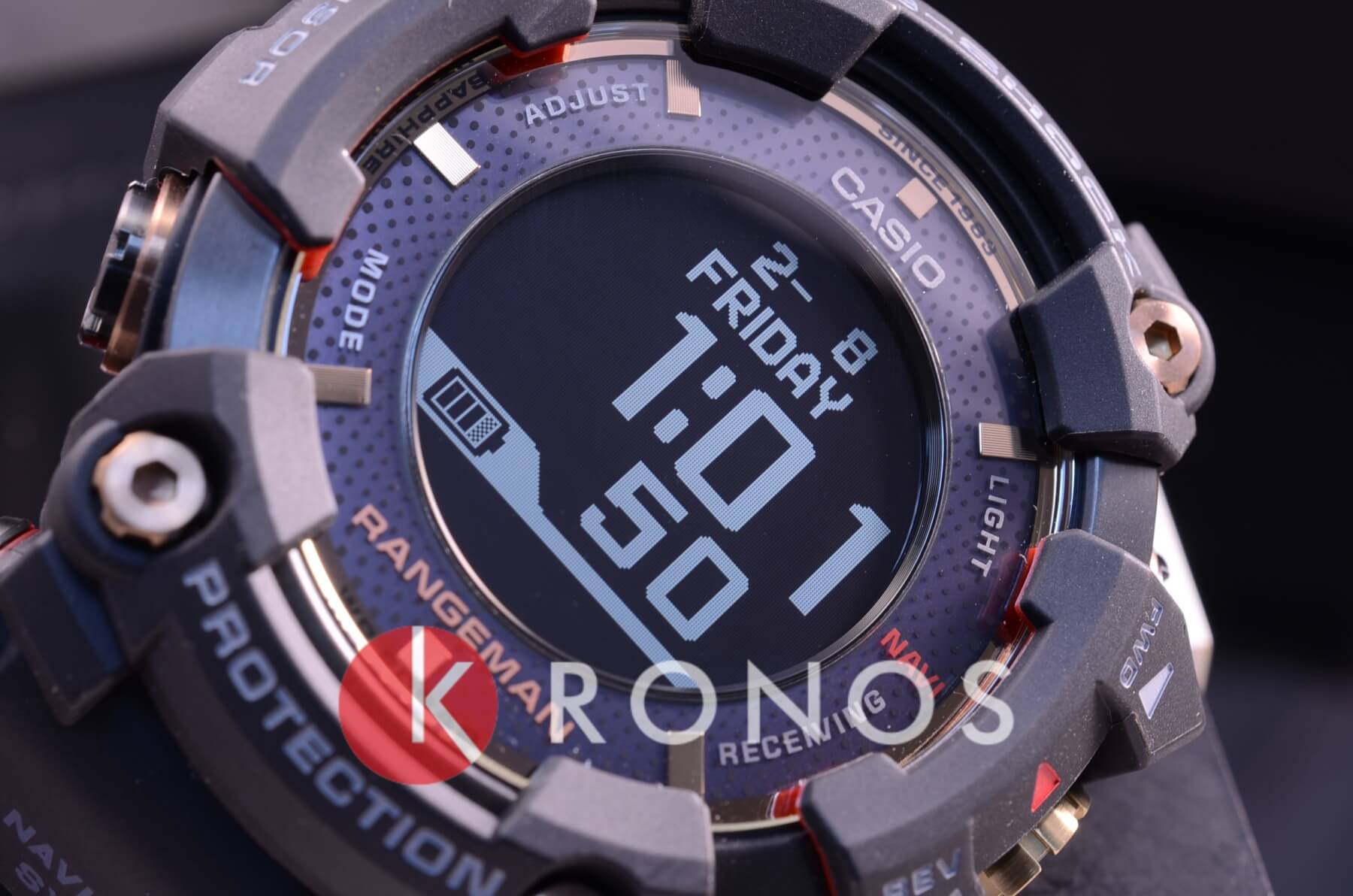 Дизайн отсылается к опасным и завораживающим потокам лавы, цветовая палитра выражена в чёрном, красном, золотом оттенках. Модель выдержит любые погодные условия и температуру до -20°C, ей не страшны удары, вибрации и падения с высоты. Массивные и брутальные часы стильно смотрятся на руке, не вызывая дискомфорта при ношении. Идеальным дополнением стал ремешок из карбона и полимера cо внутренней стороной красного цвета. Аксессуар станет универсальным помощником в путешествиях и походах, ведь в вашем распоряжении появляется множество функций: цифровой компас, хронографХронографФункция позволяет измерять отрезки времени с особой точностью: часы, минуты, секунды. Верным признаком хронографа является наличие на циферблате 3 дополнительных окошек-счётчиков., будильник, барометр, высотомер, лунный календарь, GPS, термометр, Bluetooth-синхронизацияBluetoothСовременная технология, позволяющая синхронизировать часы с телефоном и переносить данные. Часы с Bluetooth расширяют возможности вашего смартфона и делают его использование ещё более удобным., а также функция энергосбережения. Стальной безельБезельВнешний ободок, закрепляющий стекло. В спортивных часах так называется поворотное кольцо с делениями на циферблате, выполняет роль таймера – замеряет отрезки времени на шкале. Неподвижный безель – элемент декора. Однонаправленно вращающийся безель на дайверских часах позволяет фиксировать моменты погружения и выныривания на поверхность. с IP-покрытиемIP-покрытиеМетод ионного напыления. Демонстрирует повышенную устойчивость к истиранию, окислению и химическим веществам. Под воздействием высокого давления и температуры около 1500°C молекулы металла надёжно соединяются с частицами корпуса часов.. Технология . Стекло из сапфира с антибликовым покрытием. Подсветка циферблата. Водостойкость 200 метров. Габариты: 60,3 x 57,7 x 20,2 мм.