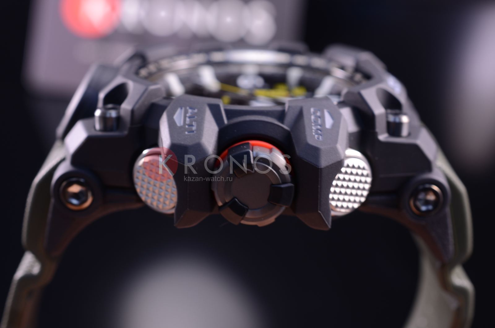 Японские мужские часы из коллекции G-Shock помогут завершить повседневный образ и порадуют владельца широким функционалом. Наручные часы серии Mudmaster привлекают брутальным дизайном с внушительным ударопрочным корпусомУдаропрочный корпусМеханизм заключён в корпус, выполненный из современных материалов, устойчивых к ударам, механическим повреждениям и падению с высоты: инновационный пластик, карбон, нержавеющая сталь, титан.. Они выполнены в стиле милитари, сочетая в себе узнаваемое оформление, прочные материалы и современные технологии. Привлекательно смотрится полимерный ремешок цвета хаки, обеспечивающий комфортное ношение. Циферблат защищает сапфировое стеклоСапфировое стеклоПрочный и надёжный материал из кристалла сапфира синтетического происхождения, характеризующийся особой твёрдостью и устойчивостью к царапинам и повреждениям. с антибликовым покрытием, устойчивое к возникновению царапин на поверхности. Корпус из высококачественного пластика. Двойная электролюминесцентная подсветкаЭлектролюминесцентная подсветкаЭлектролюминесцентная панель устанавливается под ЖК-экраном часов, при нажатии кнопки электричество преобразуется в свет за счёт подачи напряжения на атомы фосфора, такой тип подсветки позволяет освещать весь циферблат.. Питание от солнечной батареи Tough SolarTough SolarТехнология основана на подзарядке аккумулятора от источника солнечного света, специальная панель улавливает солнечные лучи и преобразует их в энергию для работы часов. Достаточно пары минут нахождения на солнце для функционирования часов в течении суток.. Индикатор заряда батарейки. Устойчивость к грязи и пыли. Включение и выключение звука кнопок. Функции: цифровой компас, барометр, термометр от -10° С до +60°С, UTCUTCВсемирное кординационное время, не имеющее привязки к географическому положению Гринвича, основывается на атомном отсчёте времени. Регулировка времени осуществляется более точно, чем устаревшее GMT.