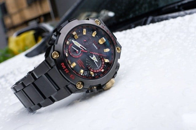Премиальная серия m-rg от знаменитой марки часов Casio представлена моделью G-SHOCK MRG-G1000B-1A4 в самурайской красно-золотой цветовой гамме.