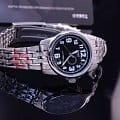 Практичный дизайн качественных японских часов выдержан в стиле casual. Круглый корпус сделан из гипоаллергенной латуни и надежно вставлен в серебристый браслет из нержавеющей стали. На черном фоне циферблата расположены крупные, удобные в прочтении арабские цифры. В корпус вставлено прочное, минеральное стекло для защиты часов от повреждений. Дисплей наручных часов покрыт светящимся слоем. Производитель комплексно позаботился о том, чтобы аксессуар был максимально удобен и прослужил долго для своего обладателя.