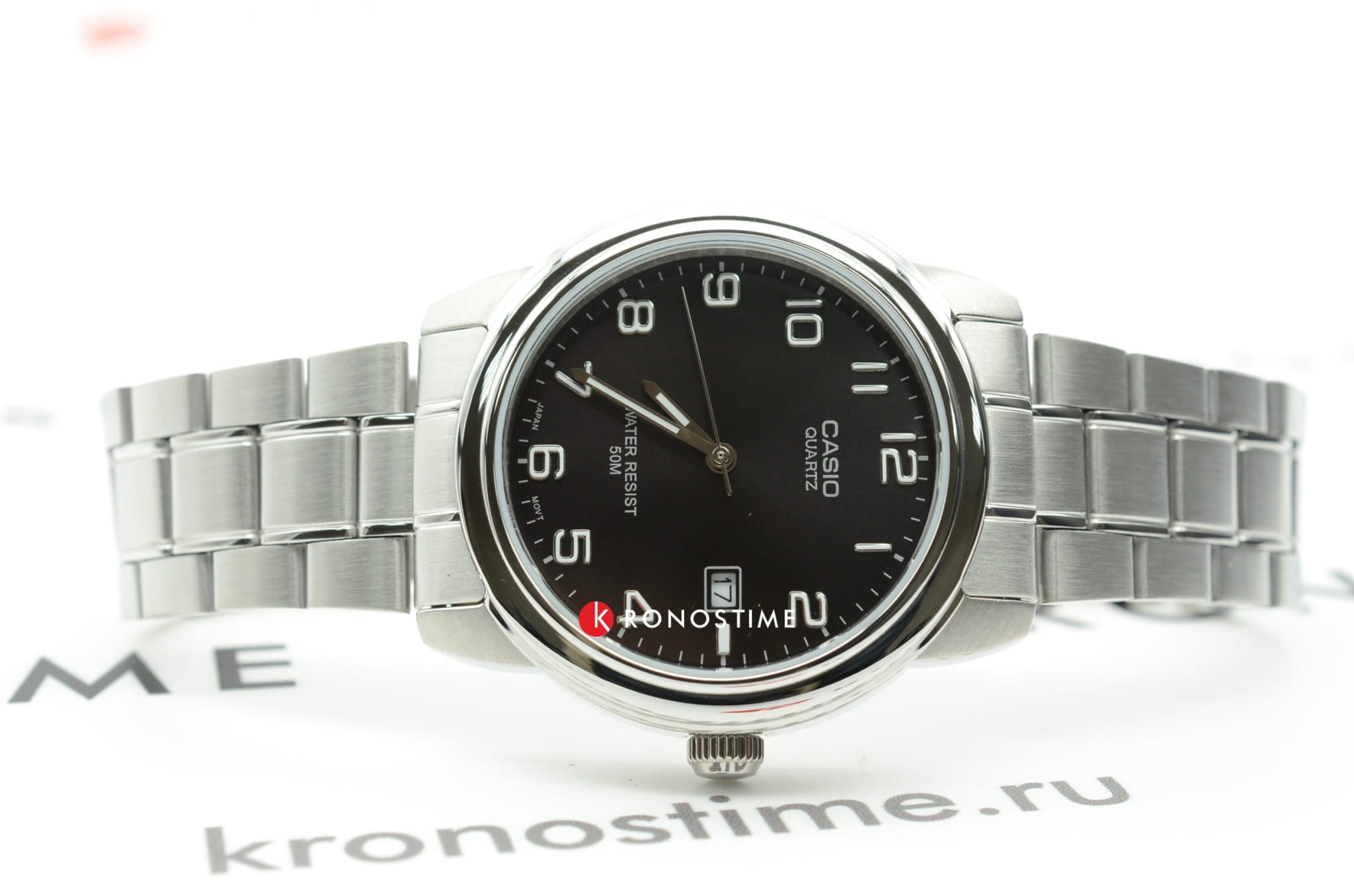 Приятный циферблат и удобный браслет. Водонепроницаемость до 50м. Показывают дату.
