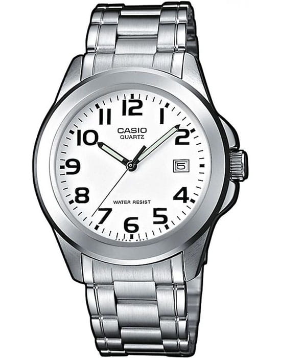 Данная модель от Casio выполнена в повседневном стиле. Часы привлекают своим стильным дизайном, сдержанной расцветкой и правильными пропорциями. Корпус выполнен из прочной гипоаллергенной латуни. Браслет из нержавеющей стали прочно закрепляется на запястье с помощью раскладывающейся застежки. Благодаря подсветке NeobriteПодсветка NeobriteИспользование светонакопительных составов на основе сульфида цинка или алюмината стронция, яркий свет можно наблюдать на протяжении 6-10 часов после «зарядки» часов около источника света., показатели на циферблате будут отчетливы видны даже в темноте. На дисплее есть миниатюрный календарь. Прочное минеральное стекло защищает изделие от царапин. Кварцевый тип механизма. Батарейка работает 3 года.