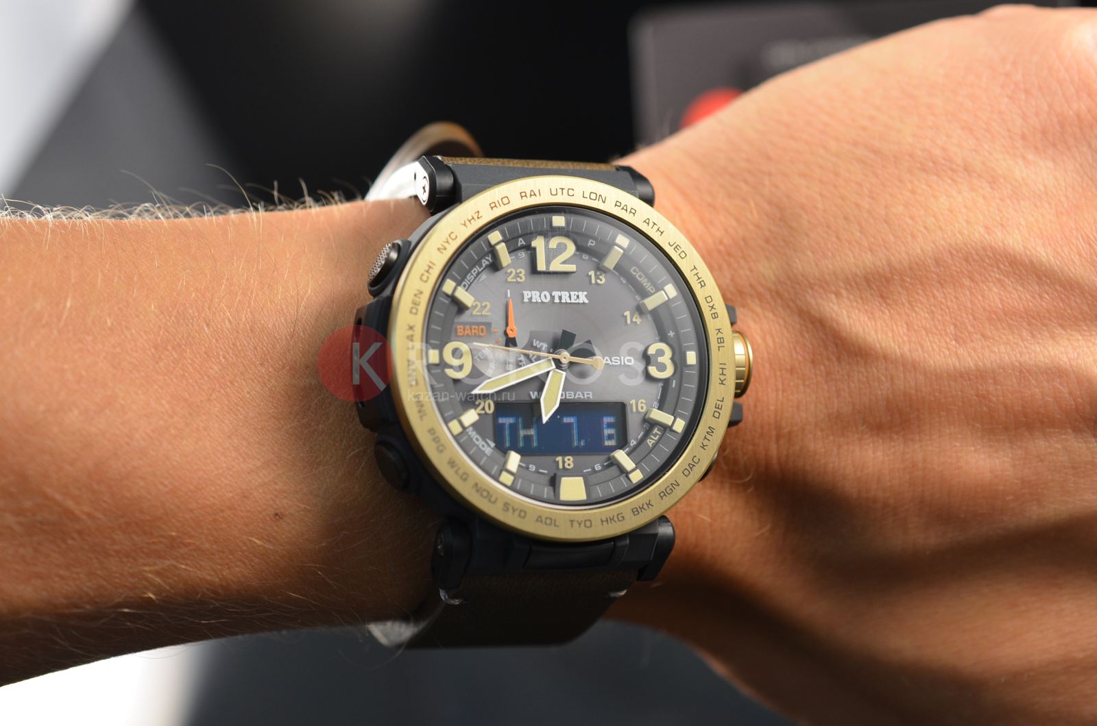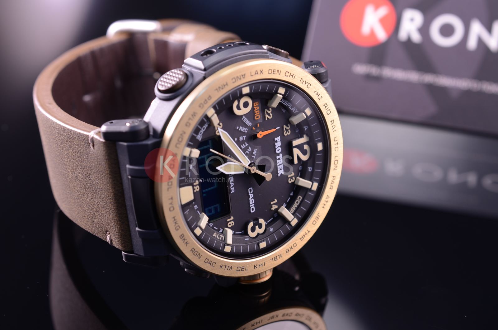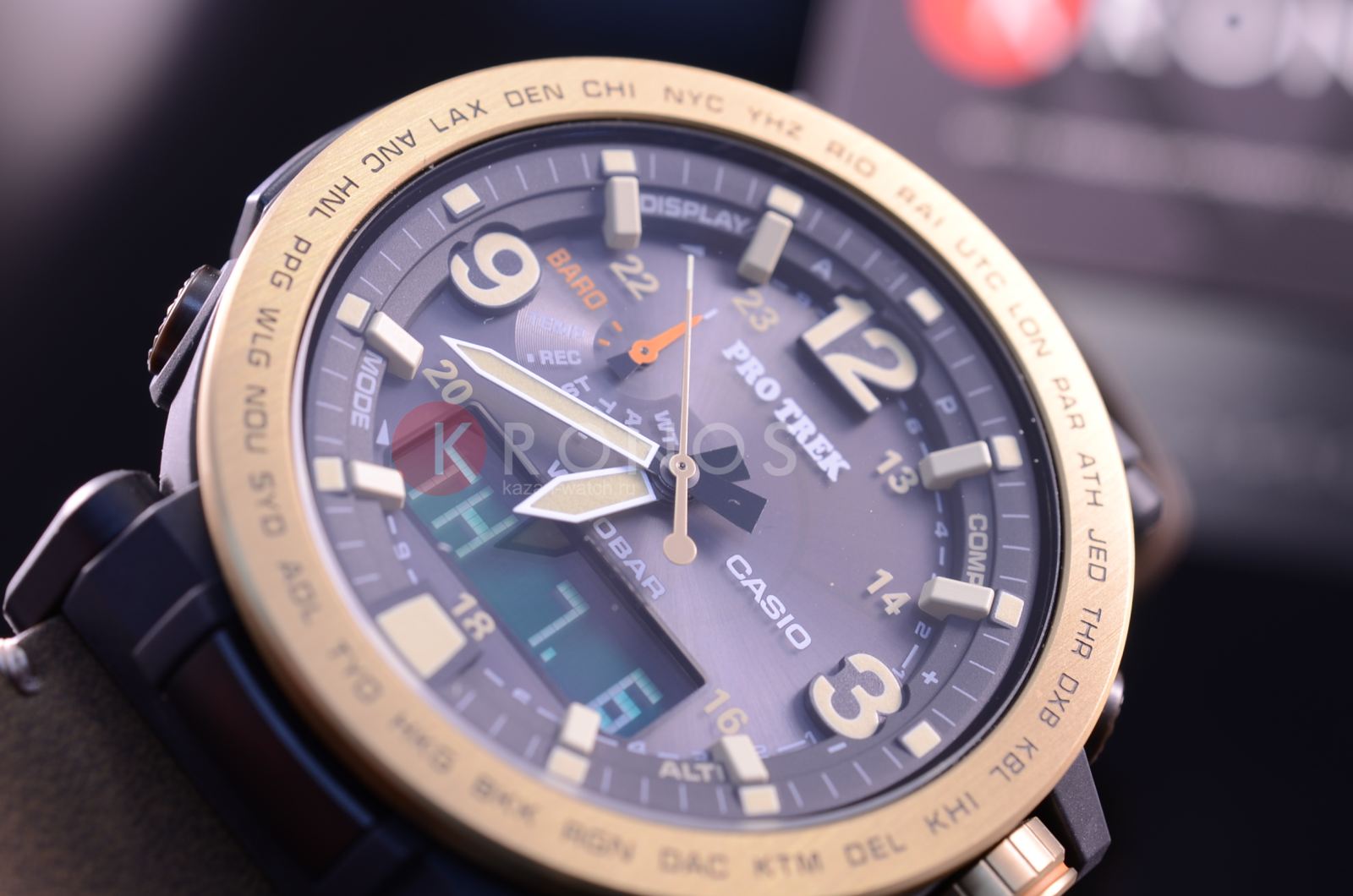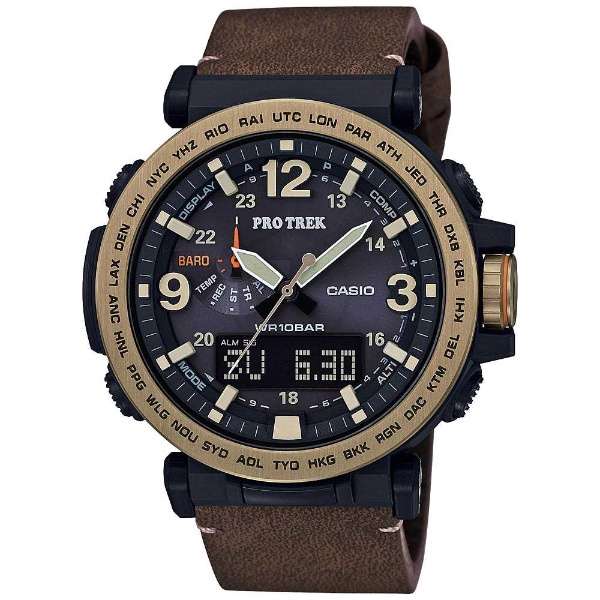 Полимерный ударопрочный корпусУдаропрочный корпусМеханизм заключён в корпус, выполненный из современных материалов, устойчивых к ударам, механическим повреждениям и падению с высоты: инновационный пластик, карбон, нержавеющая сталь, титан. защищает от ударов и повреждений, безельБезельВнешний ободок, закрепляющий стекло. В спортивных часах так называется поворотное кольцо с делениями на циферблате, выполняет роль таймера – замеряет отрезки времени на шкале. Неподвижный безель – элемент декора. Однонаправленно вращающийся безель на дайверских часах позволяет фиксировать моменты погружения и выныривания на поверхность. выполнен из нержавеющей стали 316L с IP-покрытиемIP-покрытиеМетод ионного напыления. Демонстрирует повышенную устойчивость к истиранию, окислению и химическим веществам. Под воздействием высокого давления и температуры около 1500°C молекулы металла надёжно соединяются с частицами корпуса часов.. Модель имеет расширенный список функциональных возможностей, способных быстро разрешить ту или иную ситуацию. Это барометр, термометр -10°C /+60°C, высотомер с памятью данных, мировое времяМировое время Полезное часовое усложнение, отображающее время в основных городах и известных областях по всему миру, оно связано с часовыми поясами, удобно для путешественников и бизнесменов. – 29 городов, компас, таймер, секундомер, будильник, хронографХронографФункция позволяет измерять отрезки времени с особой точностью: часы, минуты, секунды. Верным признаком хронографа является наличие на циферблате 3 дополнительных окошек-счётчиков.. Осуществляется питание от источников света , индикатор уровня заряда батарейки покажет, когда часы нужно ставить на подзарядку. Японский кварцевый механизм. Минеральное стекло. Циферблат со светодиодной подсветкойСветодиодная подсветкаСветодиодная или LED-подсветка обеспечивает появление яркого холодного свечения за счёт LED-элементов - маленьких лампочек. Они потребляют минимальное количество энергии, чаще всего можно встретить 1 светодиод, в нижней части циферблата.. Люминесцентное покрытие NeobriteПодсветка NeobriteИспользование светонакопительных составов на основе сульфида цинка или алюмината стронция, яркий свет можно наблюдать на протяжении 6-10 часов после «зарядки» часов около источника света. для стрелок. Степень водостойкости WR 100. Кожаный ремешок с бархатистой поверхностью. Корректировка времени по радиосигналу, UTCUTCВсемирное кординационное время, не имеющее привязки к географическому положению Гринвича, основывается на атомном отсчёте времени. Регулировка времени осуществляется более точно, чем устаревшее GMT.