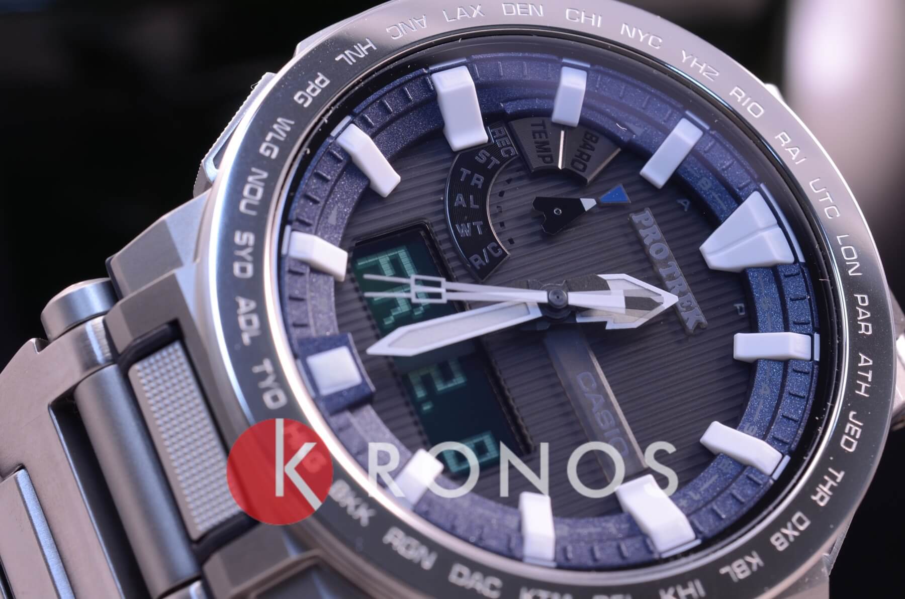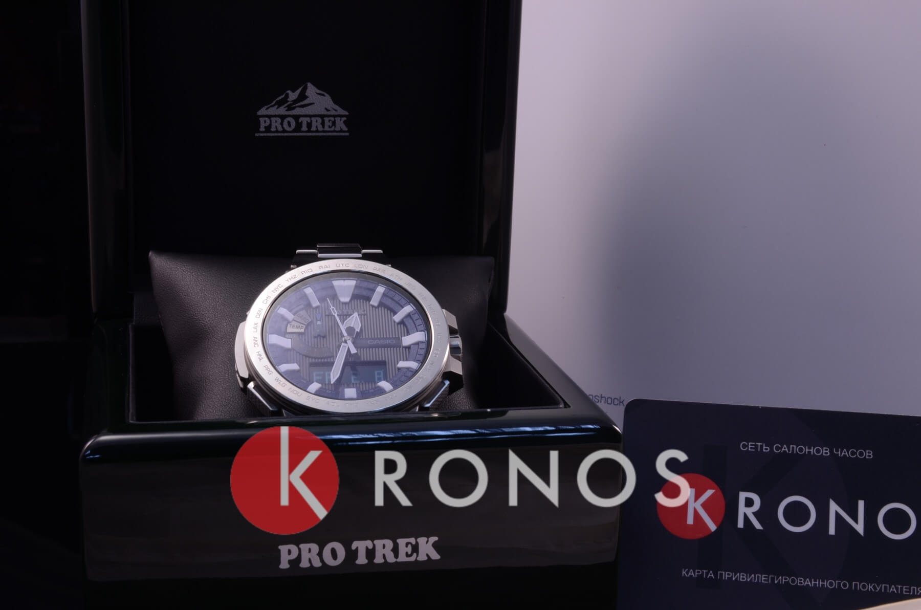 PRX-8000GT-7PR - модель, которая на сегодняшний день считается одной из лучших для занятий профессиональным альпинизмом Сверхнадежные часы отличаются не только премиальным дизайном, богатым набором функций, но и превосходной считываемостью информации, поэтому спокойно могут быть использованы альпинистами даже на высоте 8 километров Самые ключевые детали корпуса этой модели выполнены из высокопрочного сплава титана, который для дополнительной стойкости покрыт слоем карбида титана Корона часов, безель и все кнопки обработаны покрытием DLC (углеродное алмазное вещество) Циферблат со стрелками с двойной люминесцентной обработкой для лучшей видимости в темноте покрыт сверхпрочным сапфировым стеклом PRX-8000GT-7PR имеют максимальную защиту, поэтому не боятся ни ударов, ни вибрации, ни погружения в воду (до 100 метров), ни перепадов температур (до -10°C), да и трудно найти что-то такое, что могло бы их сильно повредить Конечно, при желании можно разбить любые защищенные часы, но в альпинизме, где всякое случается, модель PRX-8000T – это самый надежный помощник, который точно не подведет