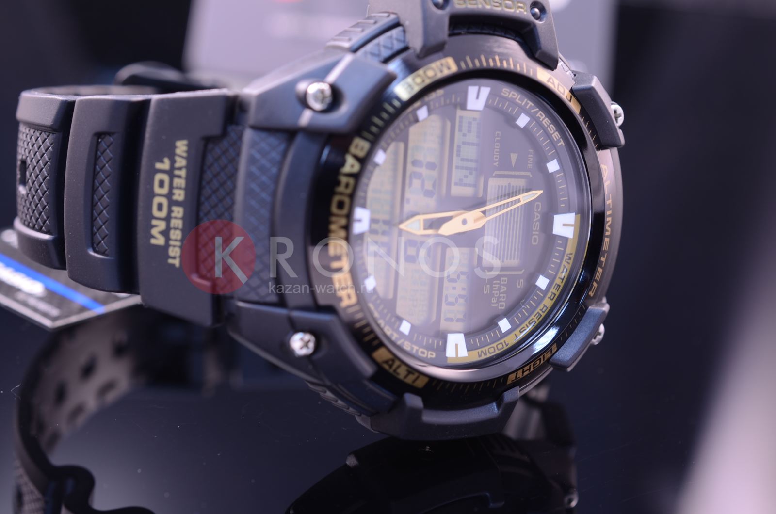 Спортивные японские мужские часы. Оснащены датчиком температуры, альтиметром, барометром и удобной электролюминесцентной подсветкой, освещающей весь циферблат. Корпус - Пластиковый; Стекло - Пластик; Водозащита - 100 м. (WR 100); Материал ремешка - Каучуковый; Цвет ремешка - Черный; Цвет циферблата - Lcd.