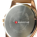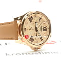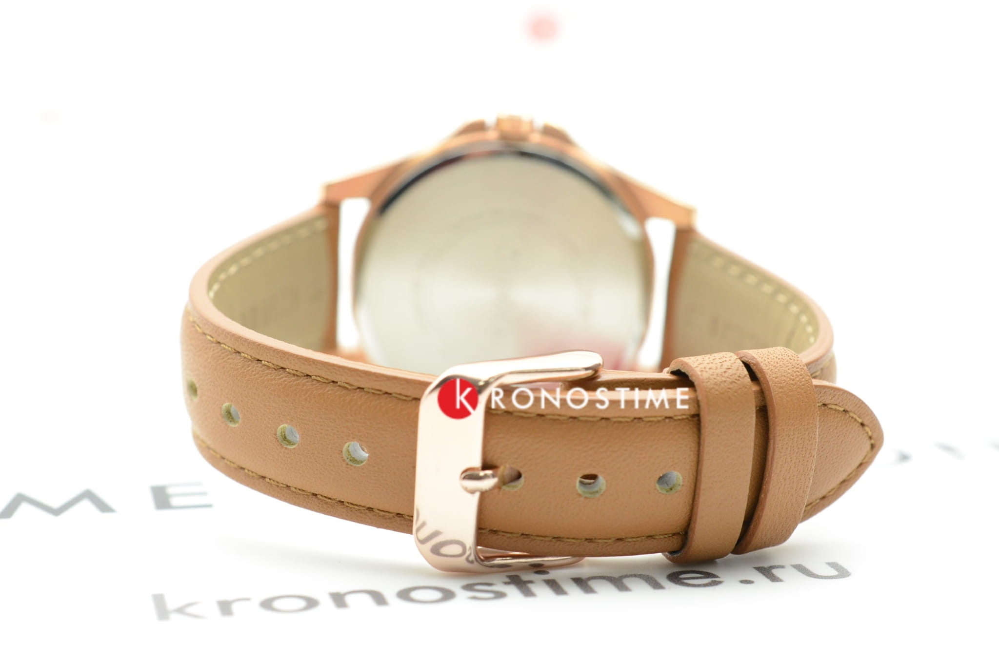 Брендовый аксессуар с отдельными мини-счётчиками выполнен в классическом стиле, крупные римские цифры создают винтажное настроение. Лаконичный циферблат декорирован стразами Swarovski, придающие вашему образу элемент роскоши. Высокоточный кварцевый механизм работает от батарейки, устраняя необходимость завода. Аккумулятор рассчитан на 3 года безупречной работы. Стильно смотрится коричневый ремешок из натуральной кожи. Люминесцентное покрытиеЛюминесцентное покрытиеПозволяет считывать показания времени в темноте. Производители наносят на стрелки, часовые индексы, безель или поверхность циферблата светонакопительный состав, дающий холодное свечение. стрелок. IP-покрытиеIP-покрытиеМетод ионного напыления. Демонстрирует повышенную устойчивость к истиранию, окислению и химическим веществам. Под воздействием высокого давления и температуры около 1500°C молекулы металла надёжно соединяются с частицами корпуса часов. корпуса с розоватым отливом. Минеральное стекло. Функция календаря. Габариты: 39,3 x 44,5 x 8,6 мм.