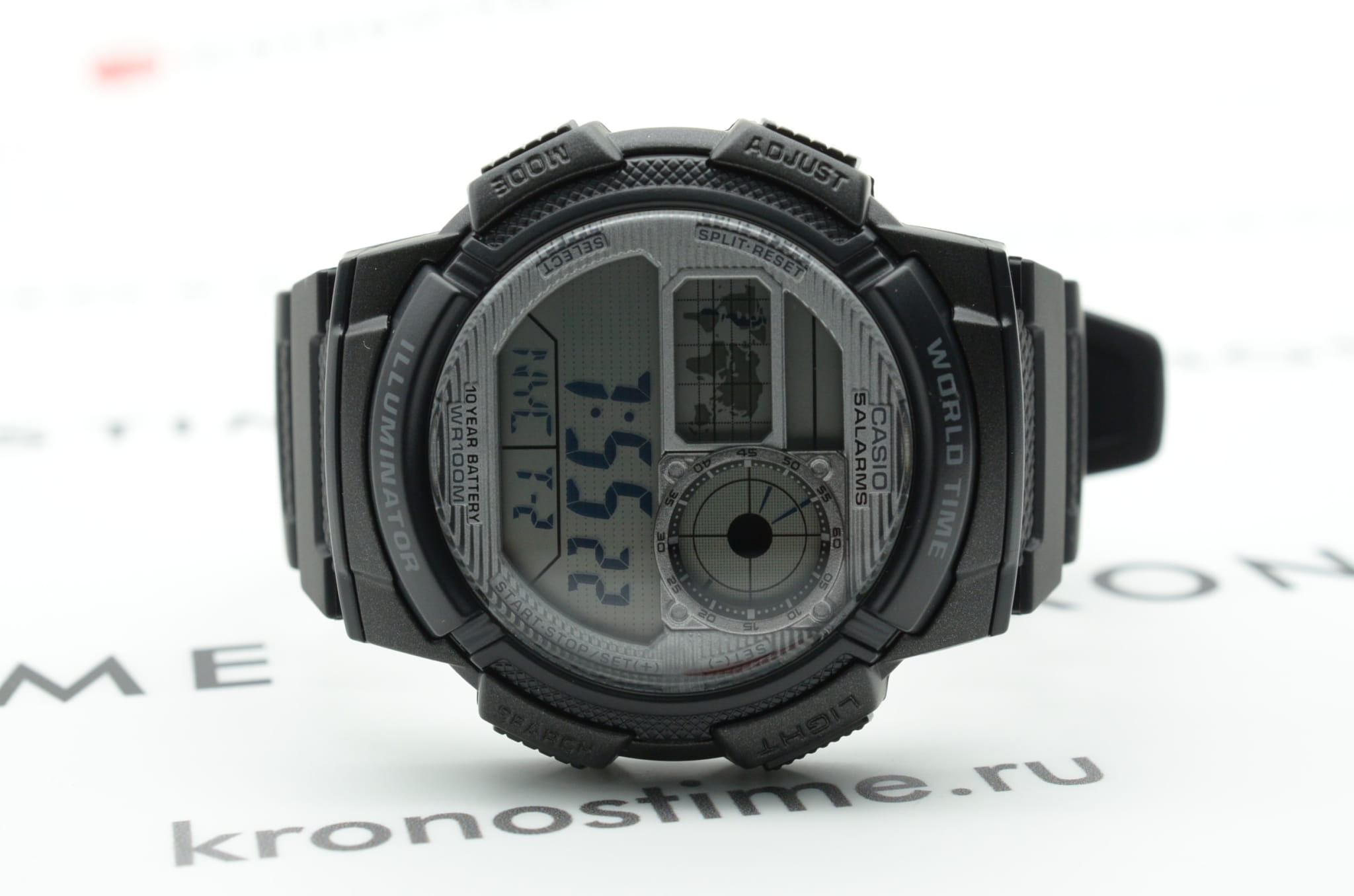 Наручные часы отличаются спортивным стилем. Броская модель выдержана в классической цветовой гамме, благодаря чему она становится идеальным вариантом на каждый день. Ударопрочный корпусУдаропрочный корпусМеханизм заключён в корпус, выполненный из современных материалов, устойчивых к ударам, механическим повреждениям и падению с высоты: инновационный пластик, карбон, нержавеющая сталь, титан. выполнен из пластика, материал устойчив к повреждениям. Кварцевый механизм работает от батарейки, рассчитанной на 10 лет. Водонепроницаемость 100 метров. Светодиодная подсветкаСветодиодная подсветкаСветодиодная или LED-подсветка обеспечивает появление яркого холодного свечения за счёт LED-элементов - маленьких лампочек. Они потребляют минимальное количество энергии, чаще всего можно встретить 1 светодиод, в нижней части циферблата. дисплея. Секундомер, 5 будильников, мировое времяМировое время Полезное часовое усложнение, отображающее время в основных городах и известных областях по всему миру, оно связано с часовыми поясами, удобно для путешественников и бизнесменов. , таймер, календарь. Прочное органическое стекло. Габариты: 43,7 x 48,1 x 13,7 мм.