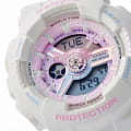 Японские женские часы противоударные Casio Baby-G BA-110PL-7A1, с высокой точностью. Класс водозащиты: 100 метров, позволит плавать, нырять и заниматься другими водными видами спорта. Корпус часов изготовлен из пластика, цвета.