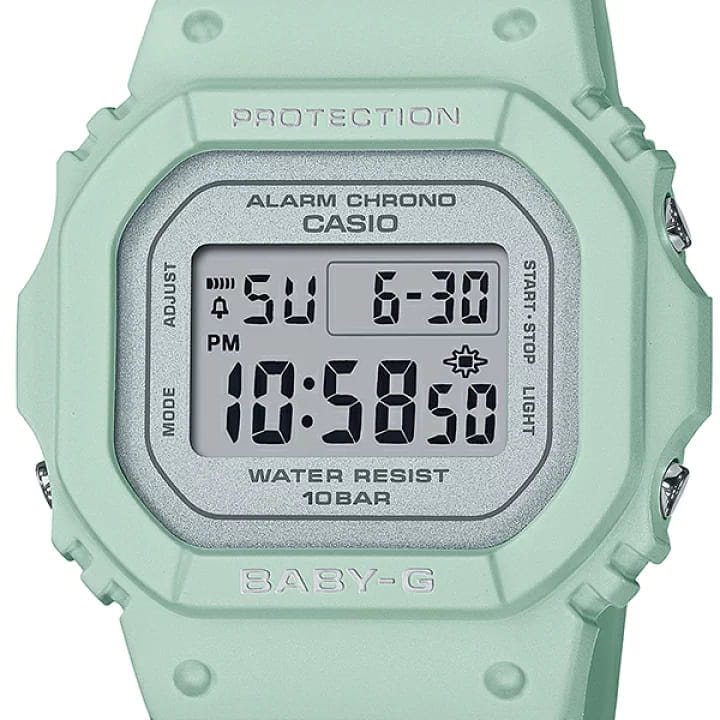 Женские противоударные японские часы Casio Baby-G BGD-565SC-3, кварцевый механизм с высокой точностью. Класс водозащиты: 100 метров, позволит плавать, нырять и заниматься другими водными видами спорта. Корпус и браслет часов изготовлены из пластика. Ударопрочный корпусУдаропрочный корпусМеханизм заключён в корпус, выполненный из современных материалов, устойчивых к ударам, механическим повреждениям и падению с высоты: инновационный пластик, карбон, нержавеющая сталь, титан. защищает механизм от ударов и вибрации. Минеральное стеклоМинеральное стеклоМинеральное стекло представляет собой искусственно выращенный минерал кварца. Такое стекло отличается особой устойчивостью к повреждениям и царапинам. Уступает по некоторым качествам сапфировому стеклу. устойчивое к мелким механическим повреждениям. После первичной настройки автоматический вечный календарьВечный календарьКлассическое часовое усложнение, представляющее собой календарь, рассчитанный на несколько лет вперёд (стандартно – до 2099 года). Определяет текущую дату, день недели, месяц. всегда отображает точную дату. СекундомерСекундомерСекундоме́р — прибор, способный измерять интервалы времени с точностью до долей секунды. измеряет прошедшее время с точностью в 1/100 секунды, пределы измерения достигают 24 часов. Электролюминесцентная подсветкаЭлектролюминесцентная подсветкаЭлектролюминесцентная панель устанавливается под ЖК-экраном часов, при нажатии кнопки электричество преобразуется в свет за счёт подачи напряжения на атомы фосфора, такой тип подсветки позволяет освещать весь циферблат. освещает весь циферблат, после отпускания кнопки свечение продолжается еще некоторое время. Модель имеет пять независимых будильниковБудильникБуди́льник — часы, в заданный момент времени подающие звуковой, световой и/или в редких случаях другой сигнал. и ежечасный сигнал.