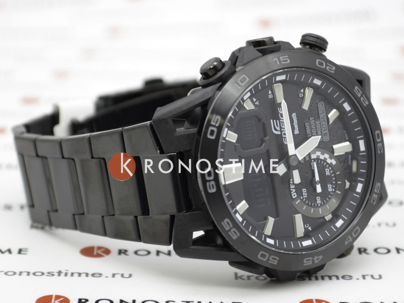 . СекундомерСекундомерСекундоме́р — прибор, способный измерять интервалы времени с точностью до долей секунды. с точностью измерения 1/100 секунды и измерением до 23 часов 59 минут 59,99 cек. ТаймерТаймерОтсчитывает секунды в обратном направлении в заданном интервале времени. обратного отсчета (диапазон времени 24 часа), автоматический календарь, 12/24 отображение времени, будильникБудильникБуди́льник — часы, в заданный момент времени подающие звуковой, световой и/или в редких случаях другой сигнал.. Автоматический переход на зимнее и летнее время, возможность включения/отключения данной функции. Переключение между домашним и мировым временем. Беспроводная технология BluetoothBluetoothСовременная технология, позволяющая синхронизировать часы с телефоном и переносить данные. Часы с Bluetooth расширяют возможности вашего смартфона и делают его использование ещё более удобным. со сверхнизким потреблением энергии для синхронизации со смартфоном. При подключении к смартфону часы корректируют текущее время, настраивают будильник, а также копируют настройки мирового времени (до 300 городов). Приложение EDIFICE Connected позволяет вести журнал показаний секундомера и прохождения этапов, вычислять разность между заданным временем и временем этапа. Отображение дней недели на шести языках. Смена отображения даты/месяца. Функции перемещения стрелок, поиска телефона и включения/отключения звука. Включение/выключение звукового сигнала по расписанию. Батарейка рассчитана на 2 года. Стальная задняя крышка крепится на 4-х винтах. Класс водозащиты: 100 метров, позволит плавать, нырять и заниматься другими водными видами спорта. Заводная головка с защитой. Батарея рассчитана на 2 года. Стальной браслет на раскладной застёжкеРаскладная застёжкаТакой тип застёжки используется только на браслетах из металла. Она никогда не раскрывается полностью, происходит разделение на 2 и более частей. Раскладывающая застёжка снизит вероятность потери часов к минимуму..
